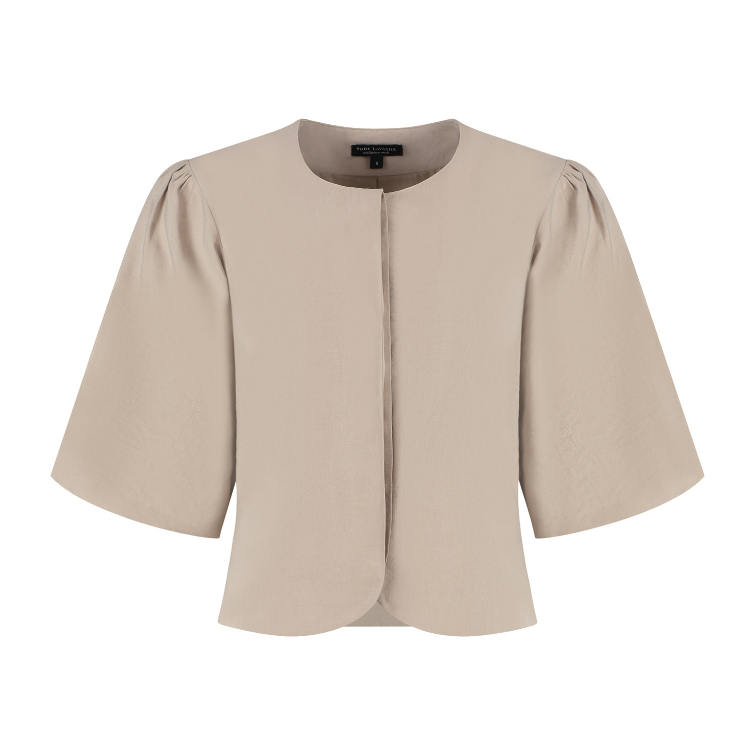 Deze blouse/jasje Aniek in een zand tint van Port Lavande straalt in haar eenvoud. De rechte, licht cropped pasvorm en de korte ballonmouwen geven de blouse net iets meer, het kan daardoor ook prima a...