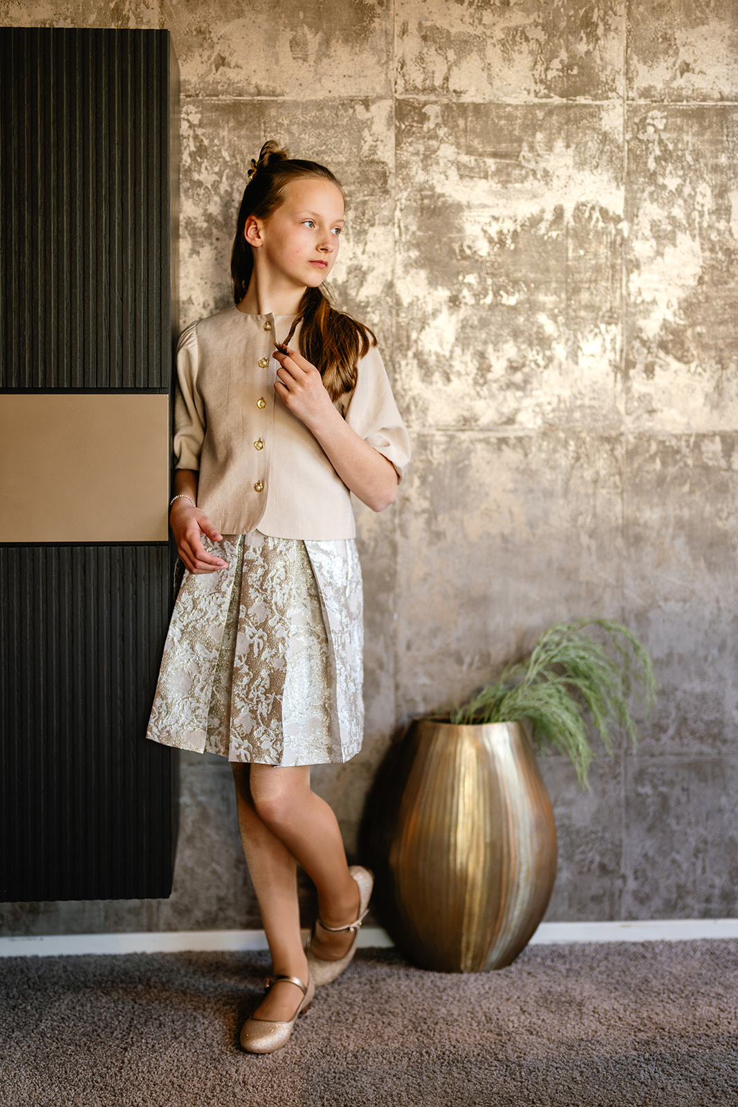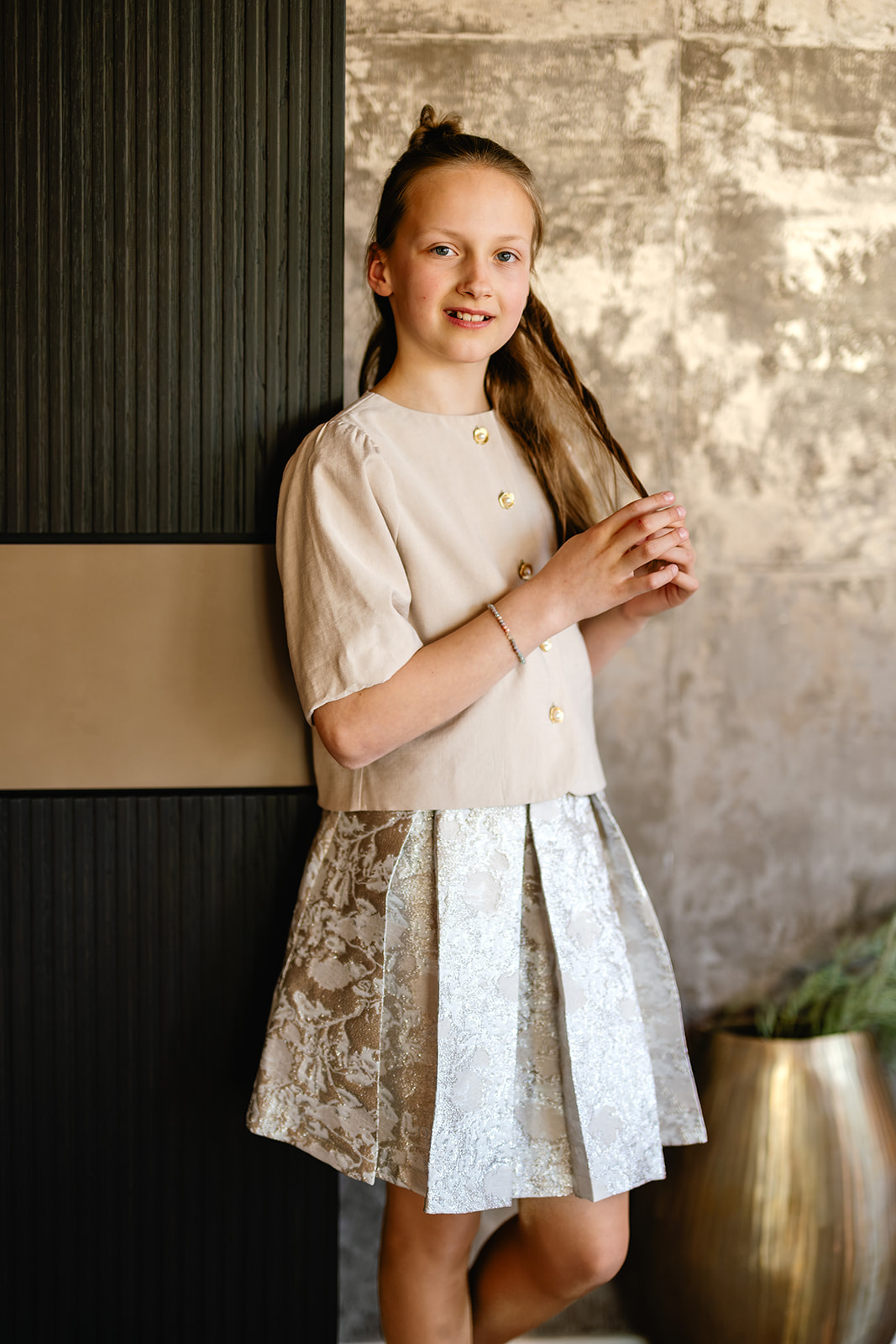 Deze blouse/jasje Geerke voor meisjes van Port Lavande straalt in haar eenvoud. De rechte, licht cropped pasvorm en de korte ballonmouwen geven de blouse net iets meer, het kan daardoor ook prima als jasje gedragen worden. De rimpeling bij de schouders en de sluiting met mooie goudkleurige parelknop knopen aan de voorzijde zorgen voor een speelse maar ook chique uitstraling. Dit meisjes blouse/jasje Geerke is gemaakt in een mooie stevige viscose kwaliteitsstof en is voorzien van een voeringstof. Perfect te combineren met rok wende en diverse andere items.