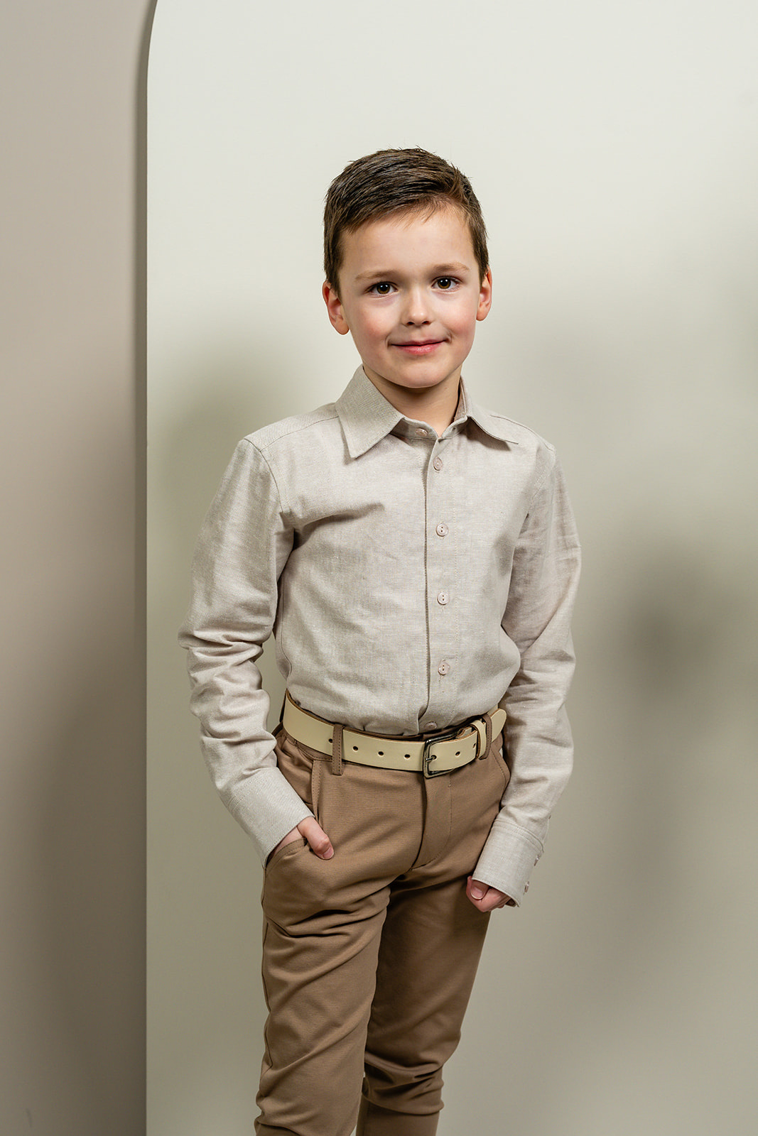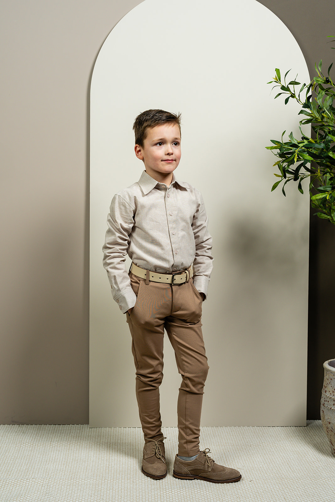 Ontdek de blouse Harry in zand van Port L. Deze stijlvolle jongensblouse combineert een moderne pasvorm met een luxe, natuurlijke uitstraling. Dankzij de zandkleur en hoogwaardige afwerking is dit overhemd een veelzijdige item voor iedere garderobe. De warme zand tint geeft het overhemd een rustige, luxe look die moeiteloos te combineren is met zowel een chino als een jeans. Deze blouse is gemaakt in een katoen/linnen kwaliteitsstof stof.