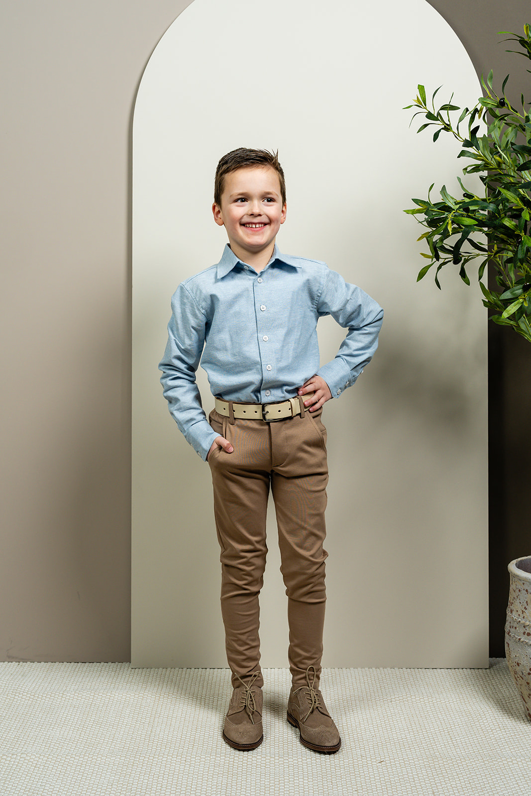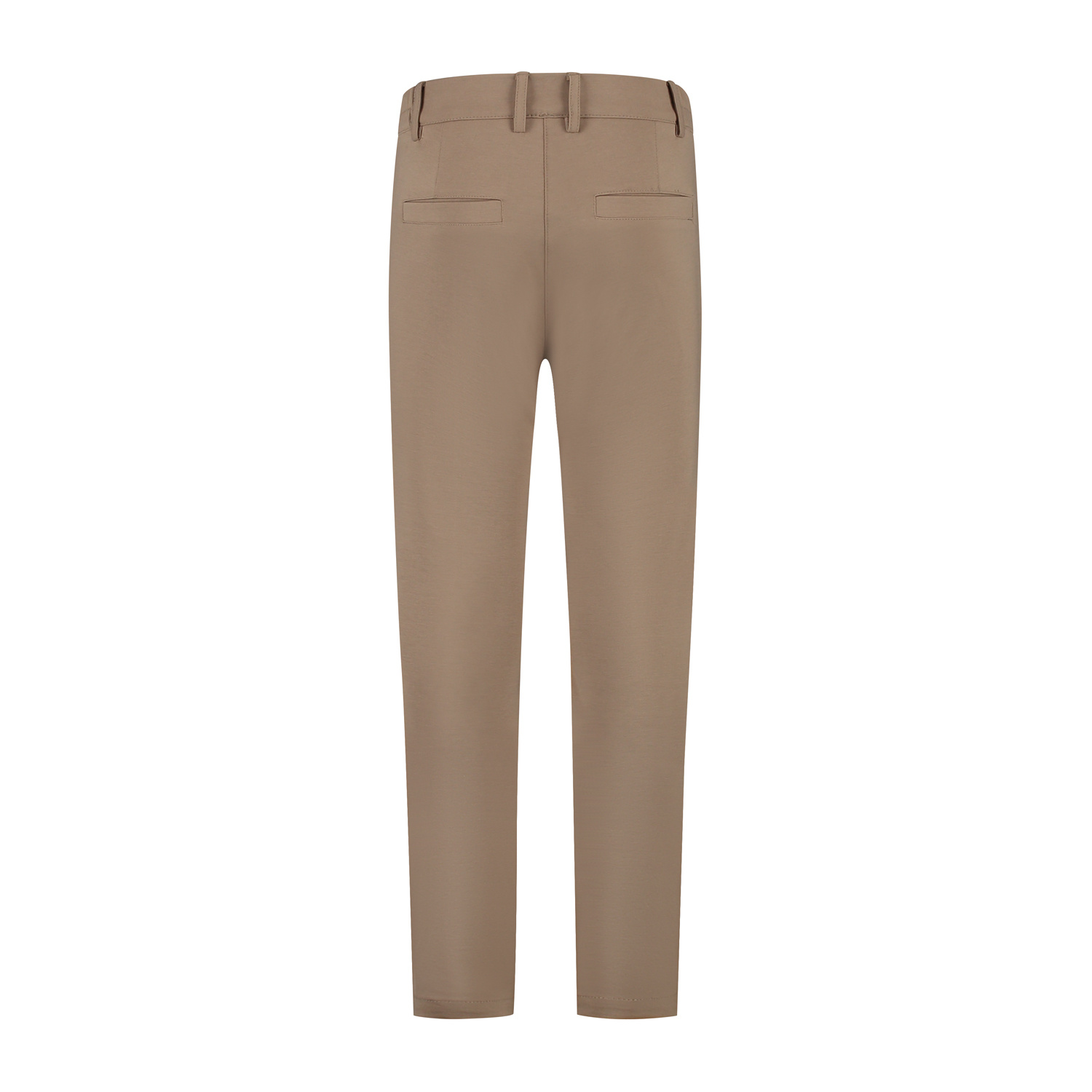 Broek Boris is een stijlvolle en sportieve chino voor jongens die zich vrij willen bewegen én er verzorgd uit willen zien. De warme camel kleur geeft de broek een rustige, natuurlijke uitstraling en maakt het makkelijk te combineren met zowel nette als casual items. De slanke, rechte pasvorm zorgt voor een moderne look zonder strak aan te voelen. Deze broek heeft in de tailleboord aan beide zijkanten een gedeeltelijk elastische boord en is gemaakt in een mooie kwaliteits stretchtstof.