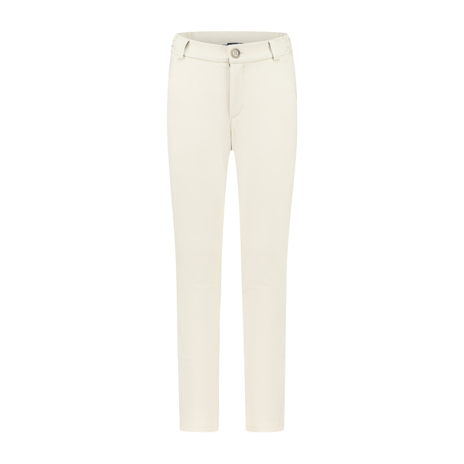 Chino met twee steekzakken en twee paspelzakken. De chino is voorzien van een elastische tailleband, knoop- en ritssluiting. De Chino heeft een regular/slim fit en is gemaakt in een mooie punto/tricot kwaliteitsstof.