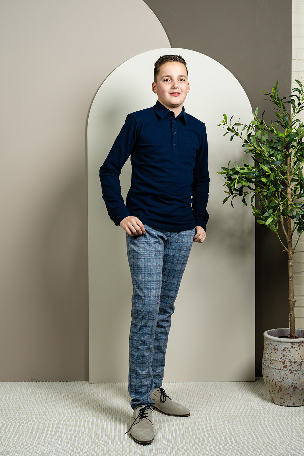 Deze blauwgrijze jongensbroek met rustige ruitdessin geeft elke outfit een nette, moderne uitstraling. De broek heeft een comfortabele pasvorm en is gemaakt van een soepele, zachte stof ...Deze blauwgrijze jongensbroek met rustige ruitdessin geeft elke outfit een nette, moderne uitstraling. De broek heeft een comfortabele pasvorm en is gemaakt van een soepele, zachte stof die prettig zit tijdens zowel schooldagen als feestelijke momenten. Deze chino is voorzien van knoopsgaten-elastiek in de tailleband. Dankzij het tijdloze patroon is deze broek eenvoudig te combineren met een overhemd, trui of colbert. Perfect voor zowel casual als nette looks.Kleurblauw-grijsMateriaal60% polyamide 35% viscose 5% elastanMerkPort L.Wasadviesfijnwasprogramma max. 30°C - hangend drogenMaatadvieszie maattabel, afmetingen zijn een indicatieMaatTaillewijdteHeupwijdte BinnenbeenlengteZijbeenlengte1045262456311054654967116566853721225870567612860735979134627662821406479658514666816889152688471921587088749516472907798170749280102176769683105 Toon meerToon minder