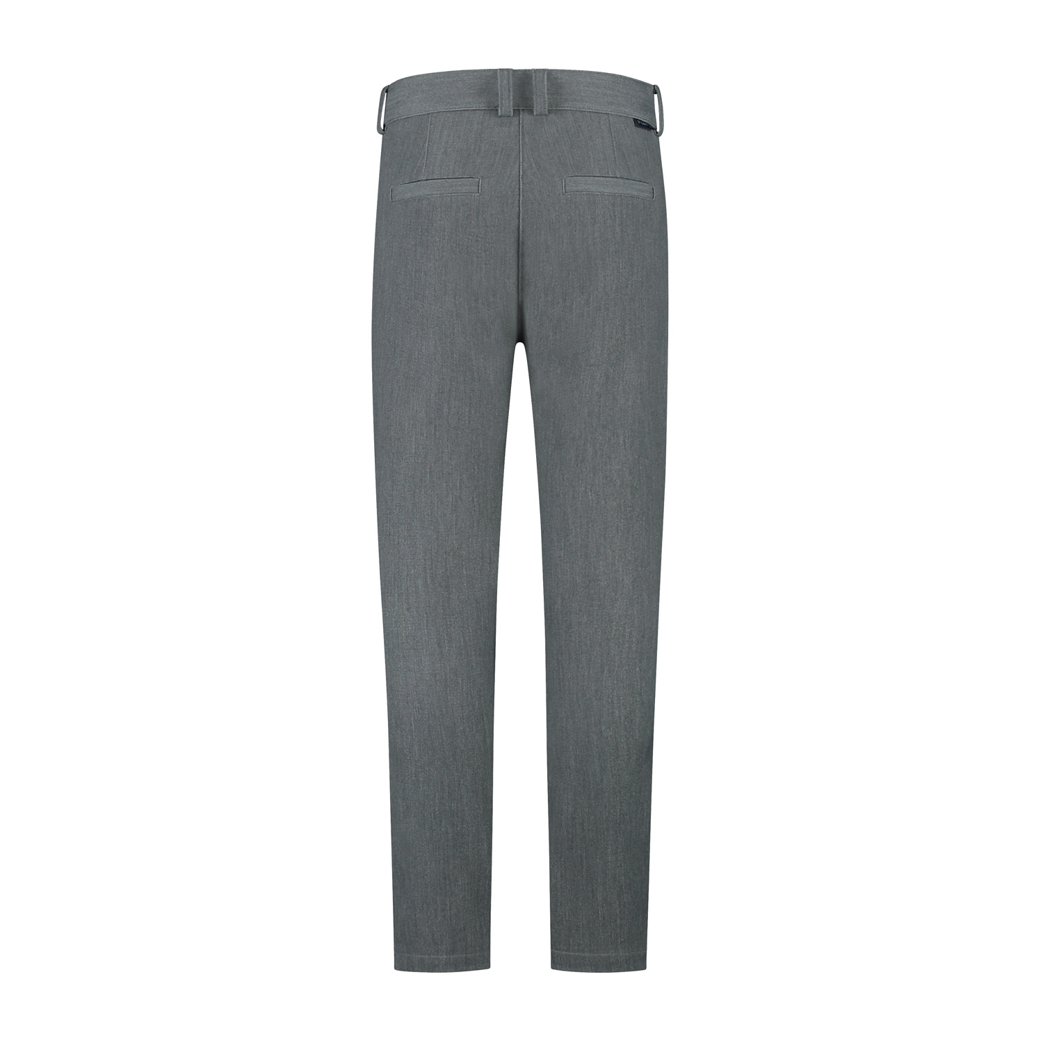 Chino met twee steekzakken en twee paspelzakken en verstelbare elastiek in de tailleband. De chino heeft knoop- en ritssluiting en een regular/slim fit. Deze chino is gemaakt in een iets rekbare nette kwaliteitsstof.