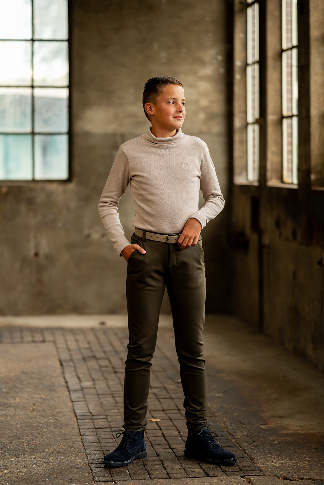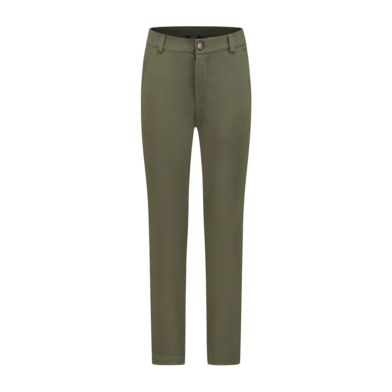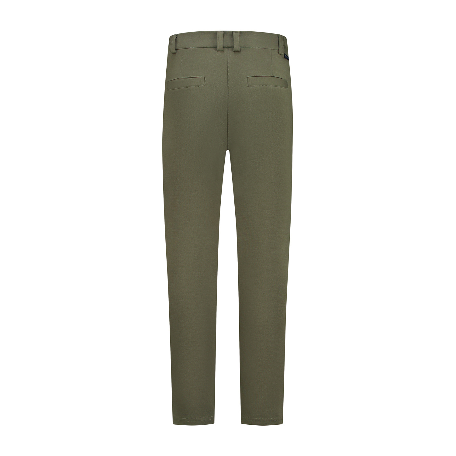 Chino met twee steekzakken en achter twee paspelzakken. De chino is voorzien van een elastische tailleband, knoop- en ritssluiting. De Chino heeft een regular/slim fit en is gemaakt in een luxe tricotpunto kwaliteitsstof. *Zelfde stof als colbert Jesse.