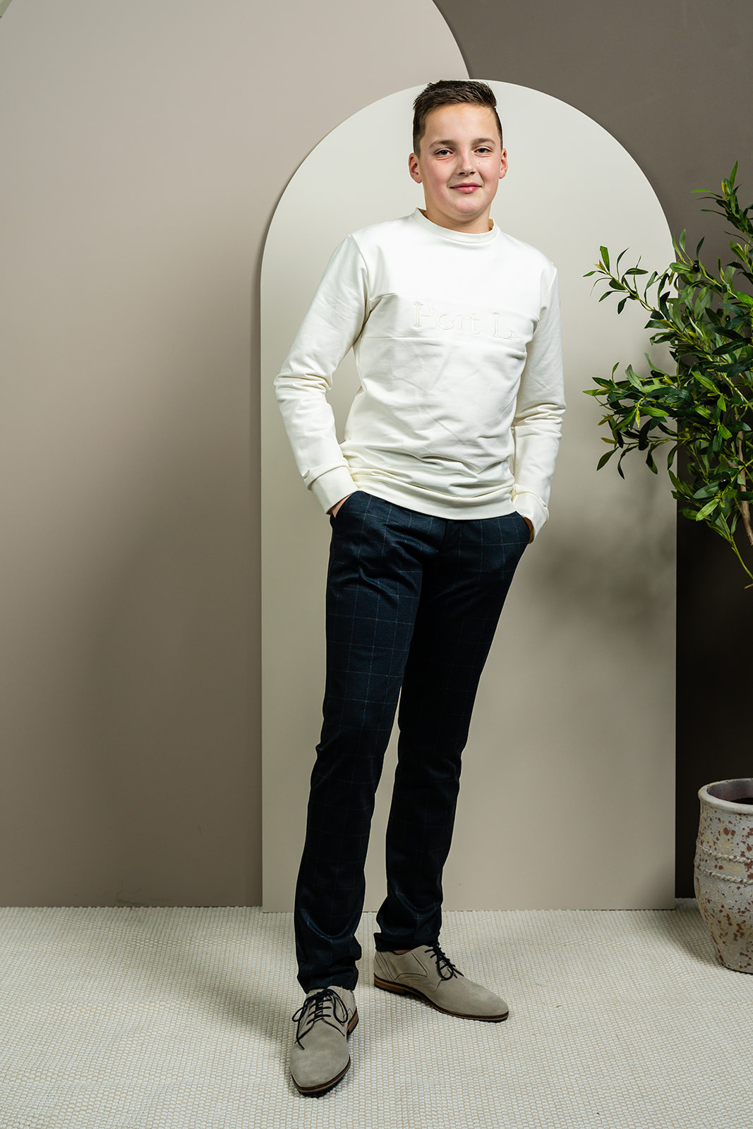 Deze donkerblauwe jongensbroek met een krijt-blokpatroon is de perfecte keuze voor stijlvolle én comfortabele outfits. De chinobroek sluit mooi aan zonder bewegingsvrijheid te beperken en is gemaakt van een soepele, zachte stof die prettig draagt. De tailleband is voorzien van knoopsgaten-elastiek. Dankzij het tijdloze patroon is deze broek eenvoudig te combineren met een overhemd, trui of colbert. Perfect voor zowel casual als nette looks. Met deze broek ziet elke jongen er verzorgd en modieus uit. Kleurdonkerblauw- krijtMateriaal60% polyamide 35% viscose 5% elastanMerkPort L.Wasadviesfijnwasprogramma max. 30°C - hangend drogenMaatadvieszie maattabel, afmetingen zijn een indicatieMaatTaillewijdteHeupwijdte BinnenbeenlengteZijbeenlengte1045262456311054654967116566853721225870567612860735979134627662821406479658514666816889152688471921587088749516472907798170749280102176769683105