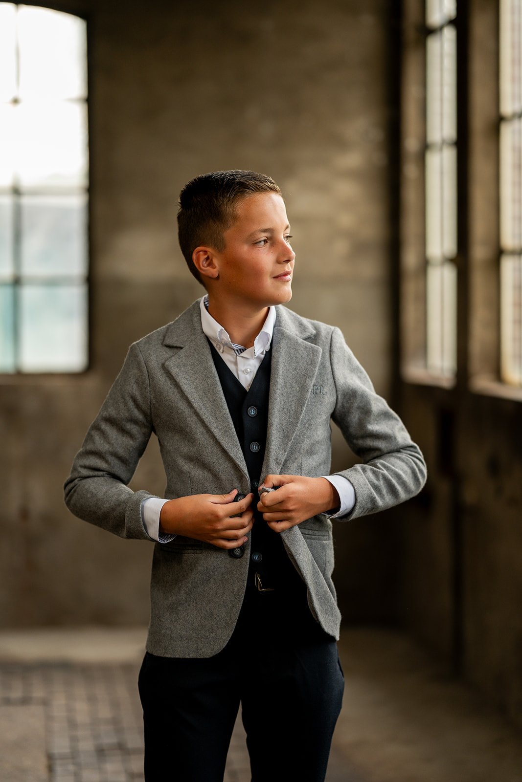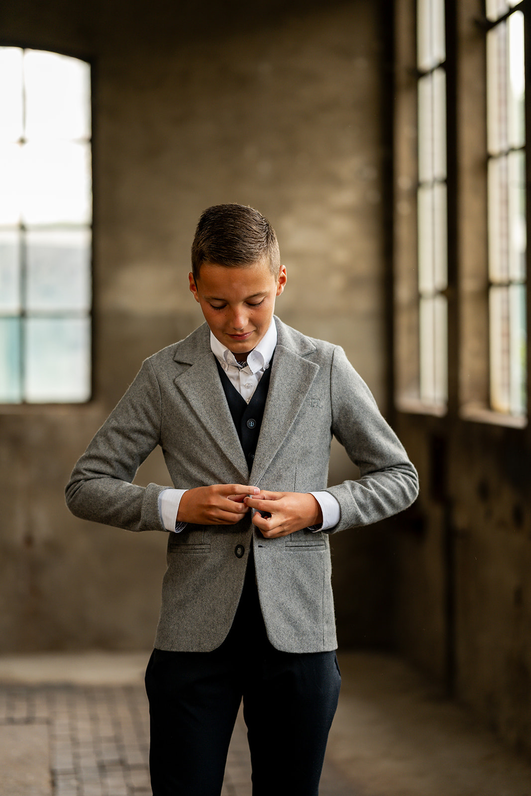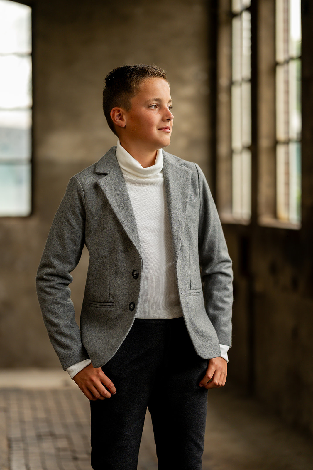 Colbert met paspelzakken en een ton sur ton Port L. borduurtje op het voorpand. Het colbert is voorzien van een voeringstof en een binnenzakje en een ophanglusje. Deze colbert is gemaakt in een wol-vi...