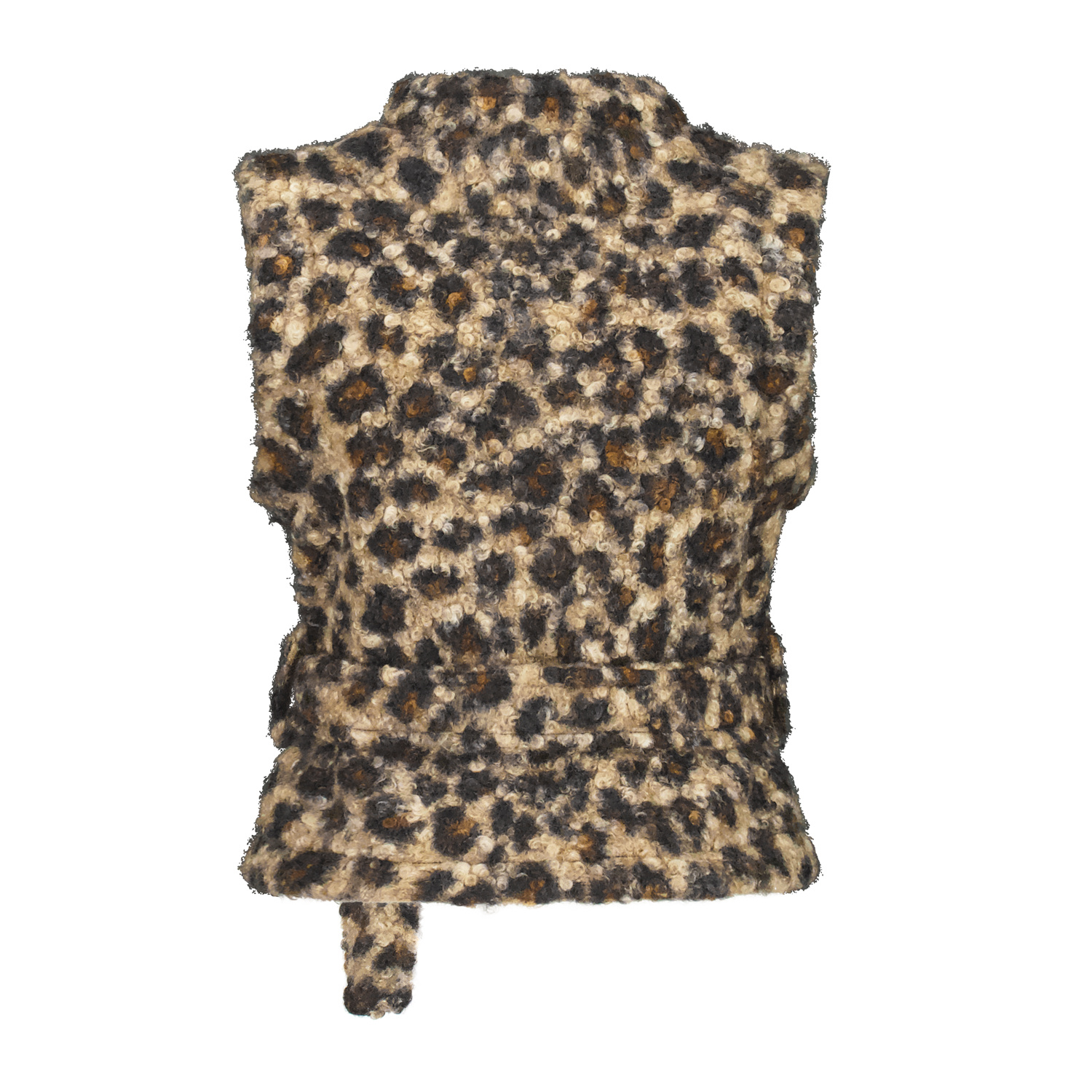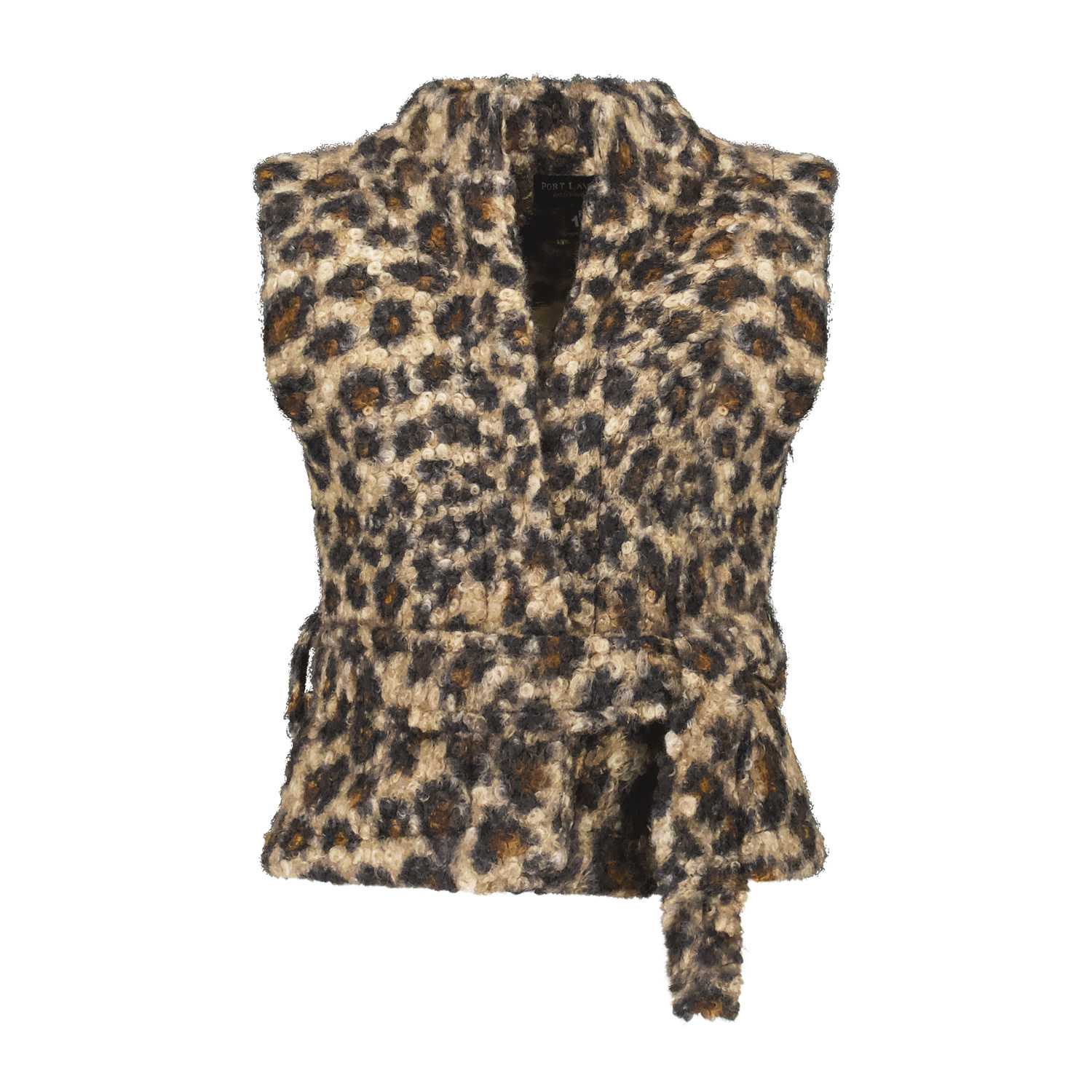 Gilet met overslag en strikceintuur om de taille. Het gilet is gemaakt in een luxe boucle kwaliteitsstof.