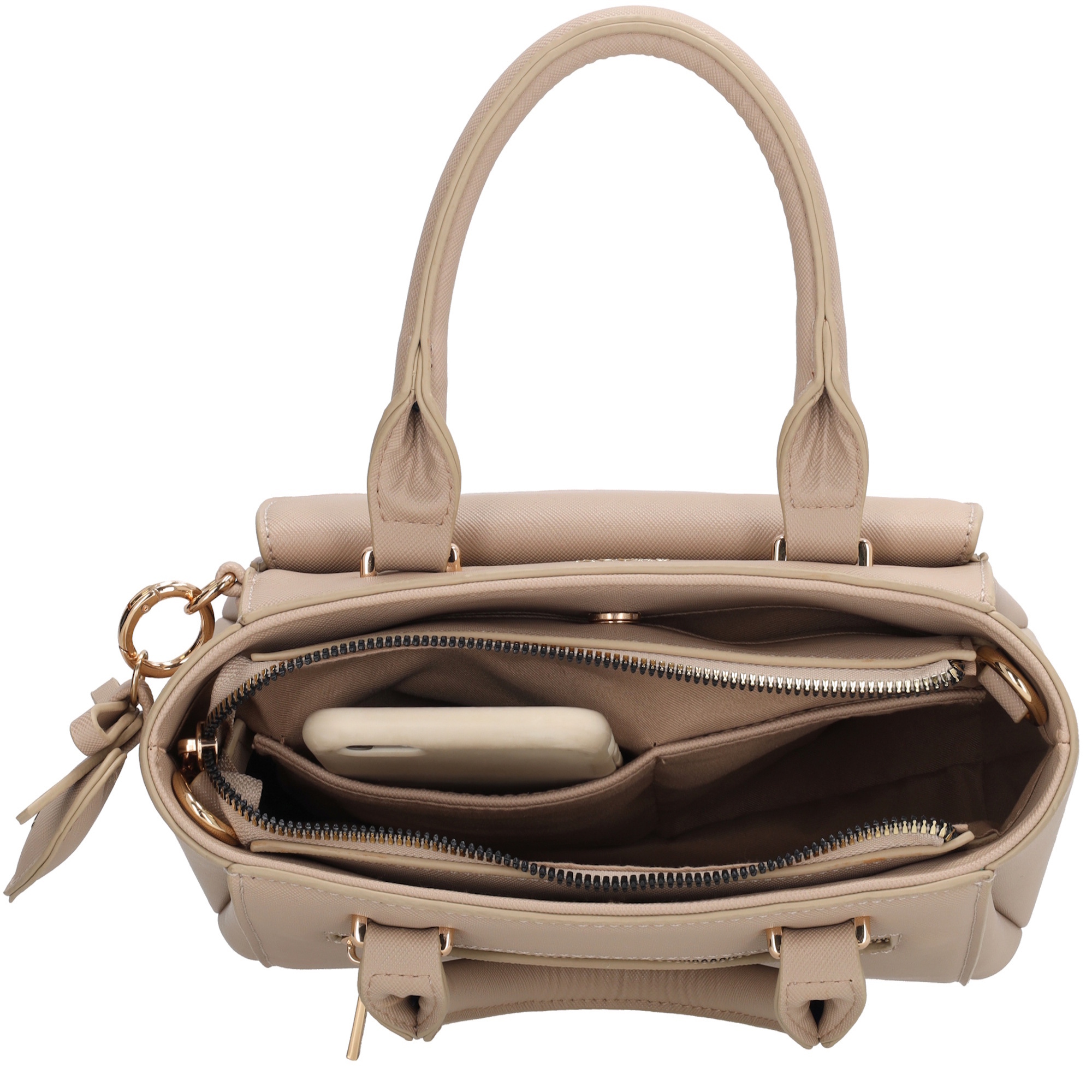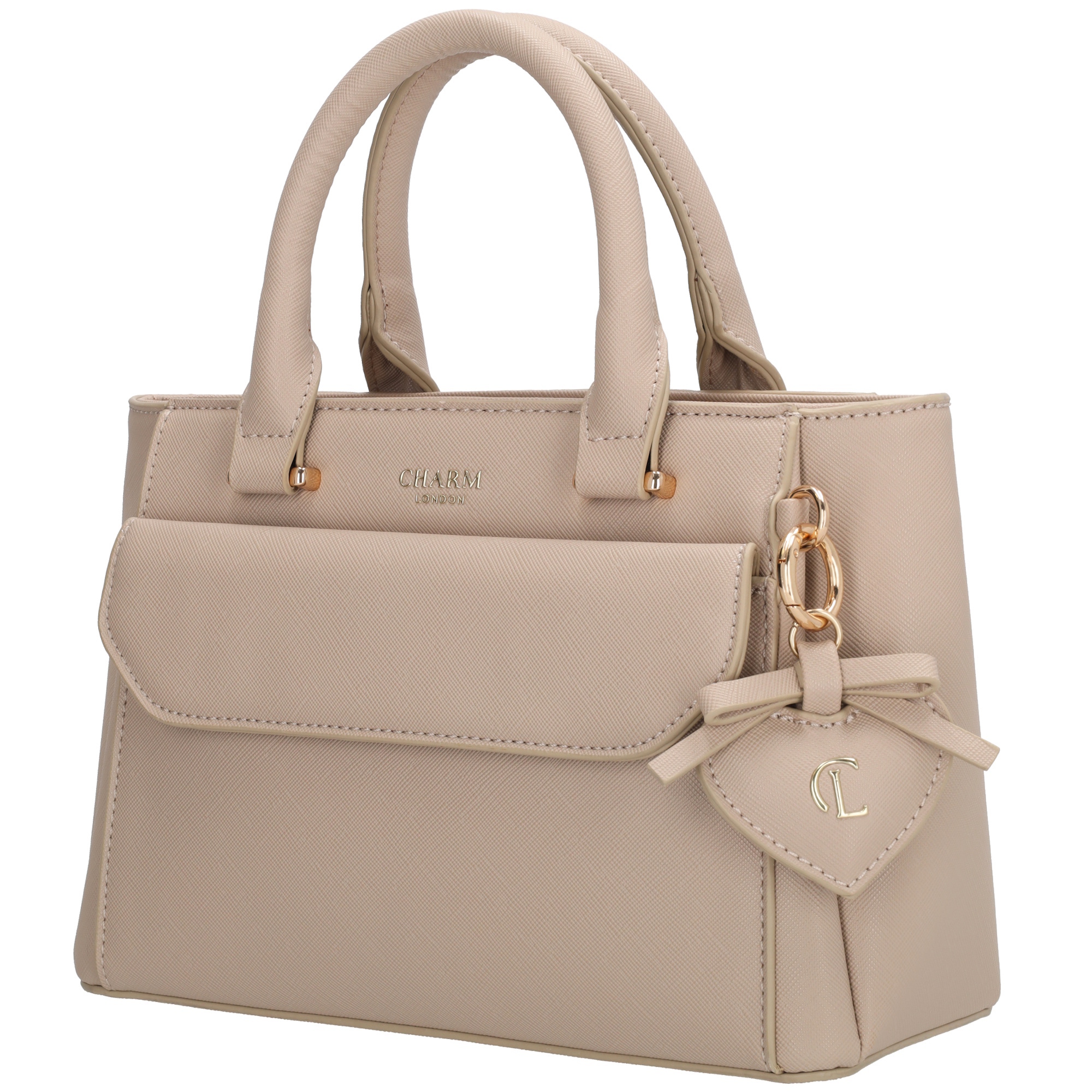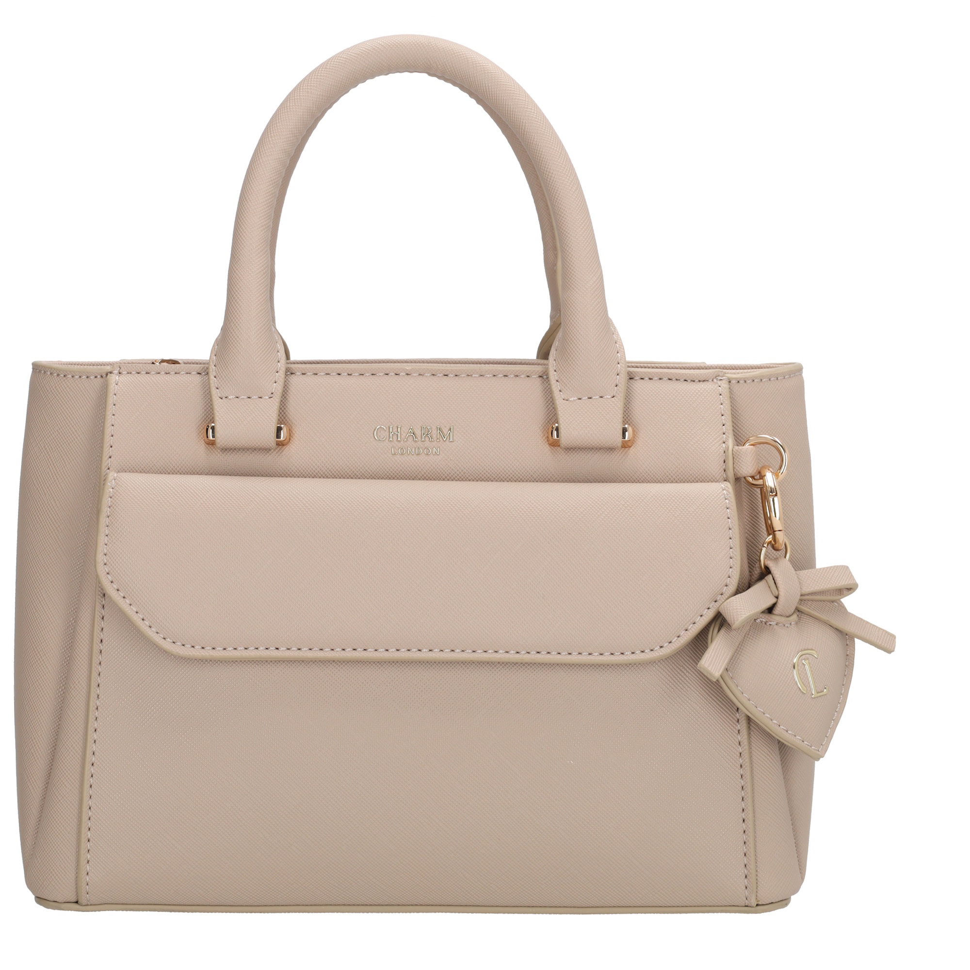 De Charm London Cambridge handtas is stijlvol, overzichtelijk en ideaal voor dagelijks gebruik. De tas heeft drie hoofdvakken: twee met een magneetsluiting en één met een ritssluiting. B...De Charm London Cambridge handtas is stijlvol, overzichtelijk en ideaal voor dagelijks gebruik. De tas heeft drie hoofdvakken: twee met een magneetsluiting en één met een ritssluiting. Binnenin vind je een speciaal telefoonvak en genoeg ruimte voor je essentials. Aan de voorkant zit een extra vak met klep en aan de achterkant een handig ritsvak. De tas wordt geleverd met een verstelbare en afneembare schouderband, zodat je haar ook comfortabel crossbody kunt dragen. Als leuke finishing touch is de tas voorzien van een hartvormige sleutelhanger.KleurlichttaupeMateriaalimitatielederMerkCharm LondonAfmeting (bxdxh)24 x 10 x 17Toon meerToon minder