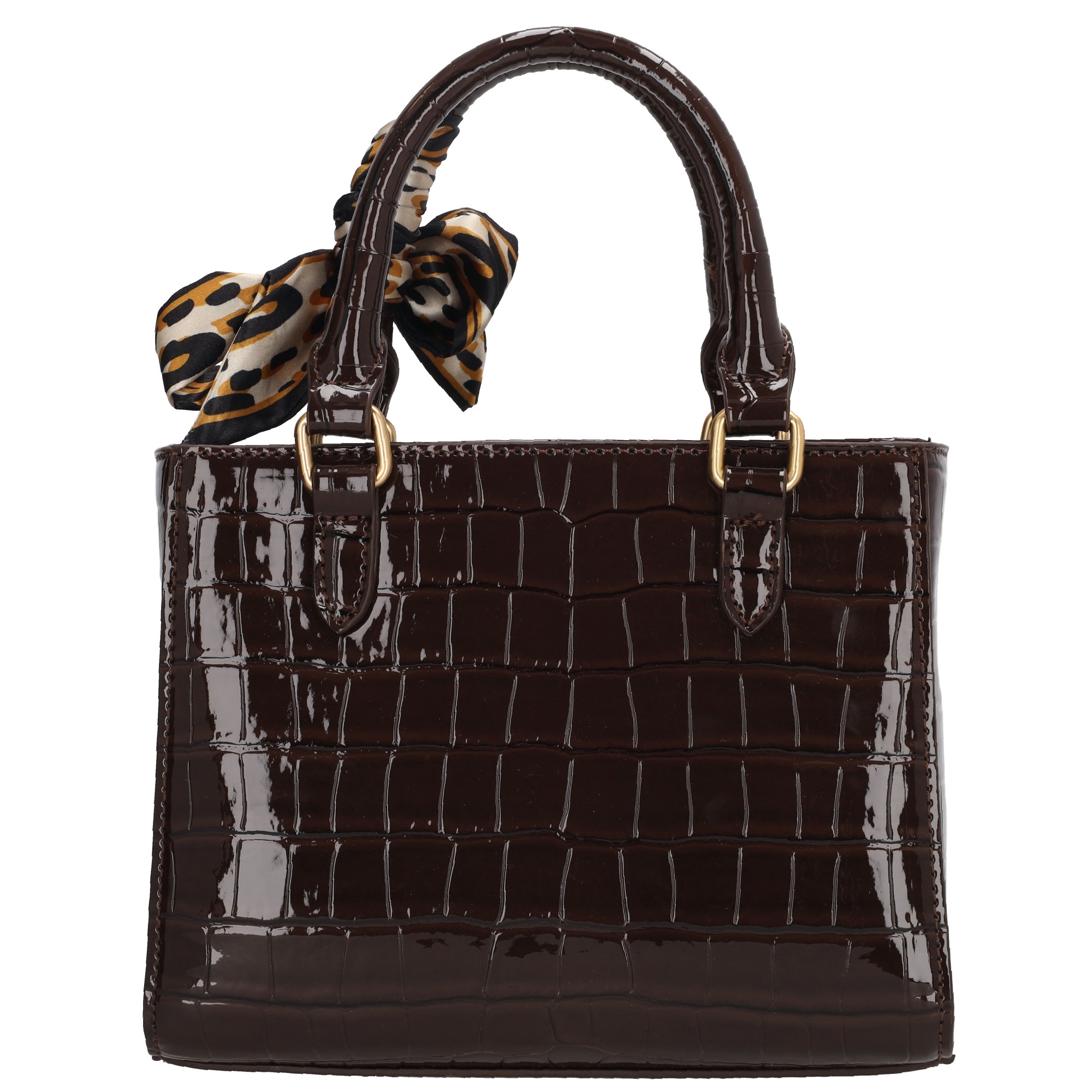 De Charm London Knightsbridge Handtas is een elegante en vrouwelijke tas met een glanzende laklook in croco-reliëf. Dankzij de twee stevige handvatten draag je deze tas comfortabel in de ...De Charm London Knightsbridge Handtas is een elegante en vrouwelijke tas met een glanzende laklook in croco-reliëf. Dankzij de twee stevige handvatten draag je deze tas comfortabel in de hand of over de arm. Het stijlvolle design maakt de tas perfect voor zowel dagelijks gebruik als speciale gelegenheden. De tas sluit met een ritssluiting en heeft aan de binnenkant een ritsvak en een telefoonvak voor een overzichtelijke indeling. Je kunt de tas ook als schoudertas dragen dankzij de verstelbare en afneembare schouderband. De goudkleurige details zorgen voor een luxe uitstraling. Als extra detail is de tas afgewerkt met een hartvormige hanger met spiegeltje en een decoratief sjaaltje dat je op verschillende manieren kunt dragen.KleurdonkerbruinMateriaalimitatielederMerkCharm LondonAfmeting (bxdxh)20 x 8 x 16Toon meerToon minder