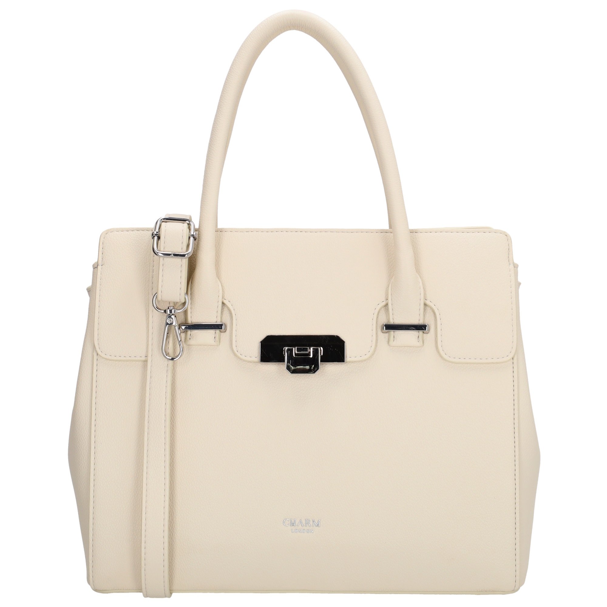 De Charm London Soho Handtas is een stijlvolle en praktische tas die perfect past bij elke gelegenheid. De tas heeft twee stevige handvaten en wordt geleverd met een afneembare en verstelbare schouderband, zodat je zelf kunt kiezen hoe je hem draagt. Dankzij het iets grotere formaat biedt deze tas extra ruimte voor al je essentials en nog een paar extra items. Binnenin vind je een telefoonvak en een ritsvak om je spullen overzichtelijk op te bergen. Aan de achterkant bevindt zich een extra ritsvak, ideaal voor kleinere items die je snel bij de hand wilt hebben. Met zijn elegante design en functionele indeling is deze handtas zowel modieus als handig voor dagelijks gebruik, met net dat beetje extra ruimte.