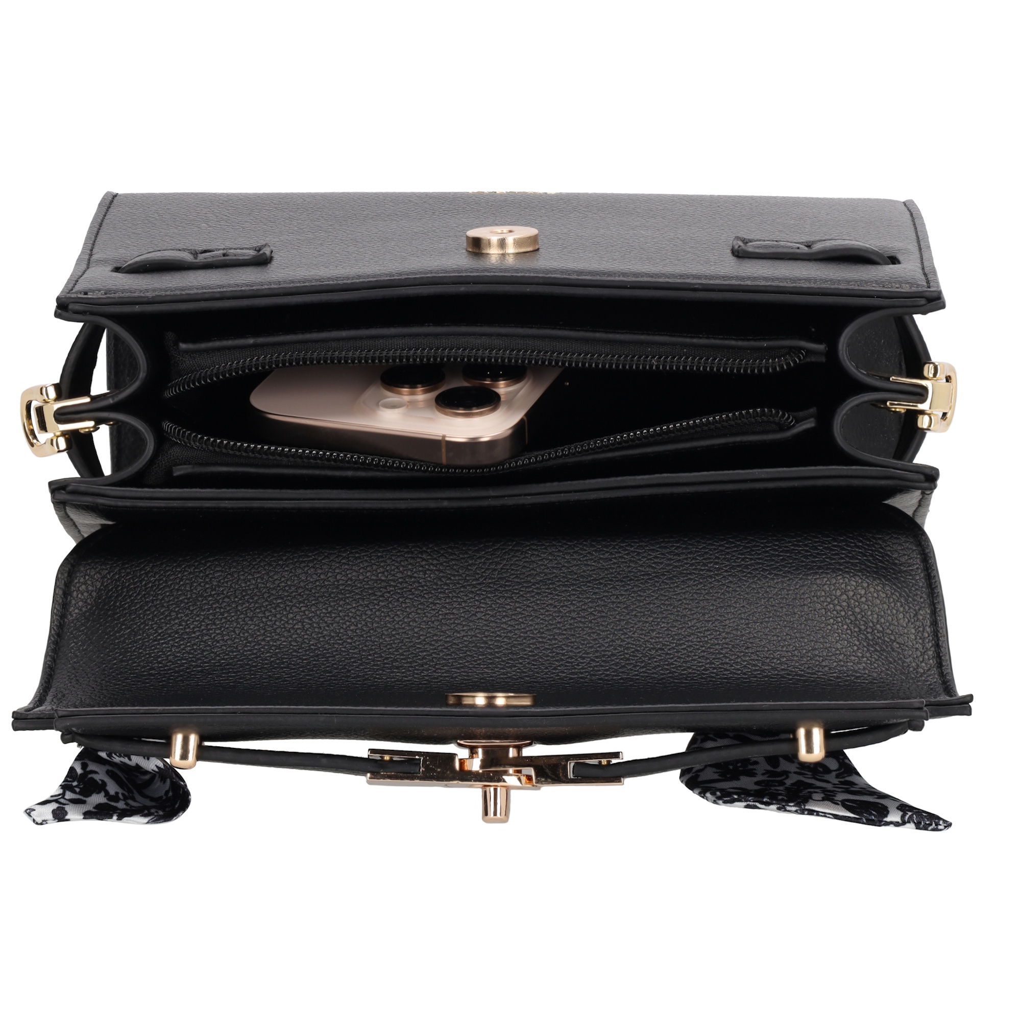 De Charm London The Hamptons Handtas is een elegante en veelzijdige tas met een stijlvolle overslag en handvat voor een klassieke uitstraling. De tas sluit met een rits en een overslag met drukker, zodat je spullen veilig opgeborgen blijven. Binnenin bevindt zich een ritsvak en een telefoonvak, ideaal om je essentials overzichtelijk te bewaren. Op de voorkant zit een mooi gespdetail afgewerkt met een speels sjaaltje, wat de tas een vrouwelijke touch geeft. Voor extra draagcomfort is er een lange, verstelbare en afneembare schouderband, zodat je de tas ook crossbody of over de schouder kunt dragen.