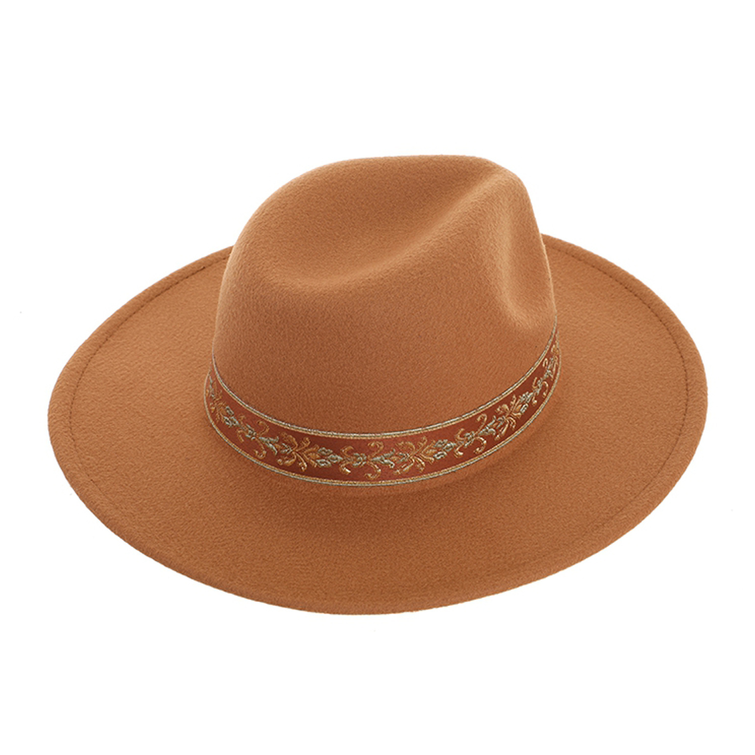 Filten hoed voorzien van een band rondom de rand. Stijlvolle hoed, of je nu voor een casual of nette look gaat. De bol van de hoed is 11cm hoog en de rand is 8cm.
