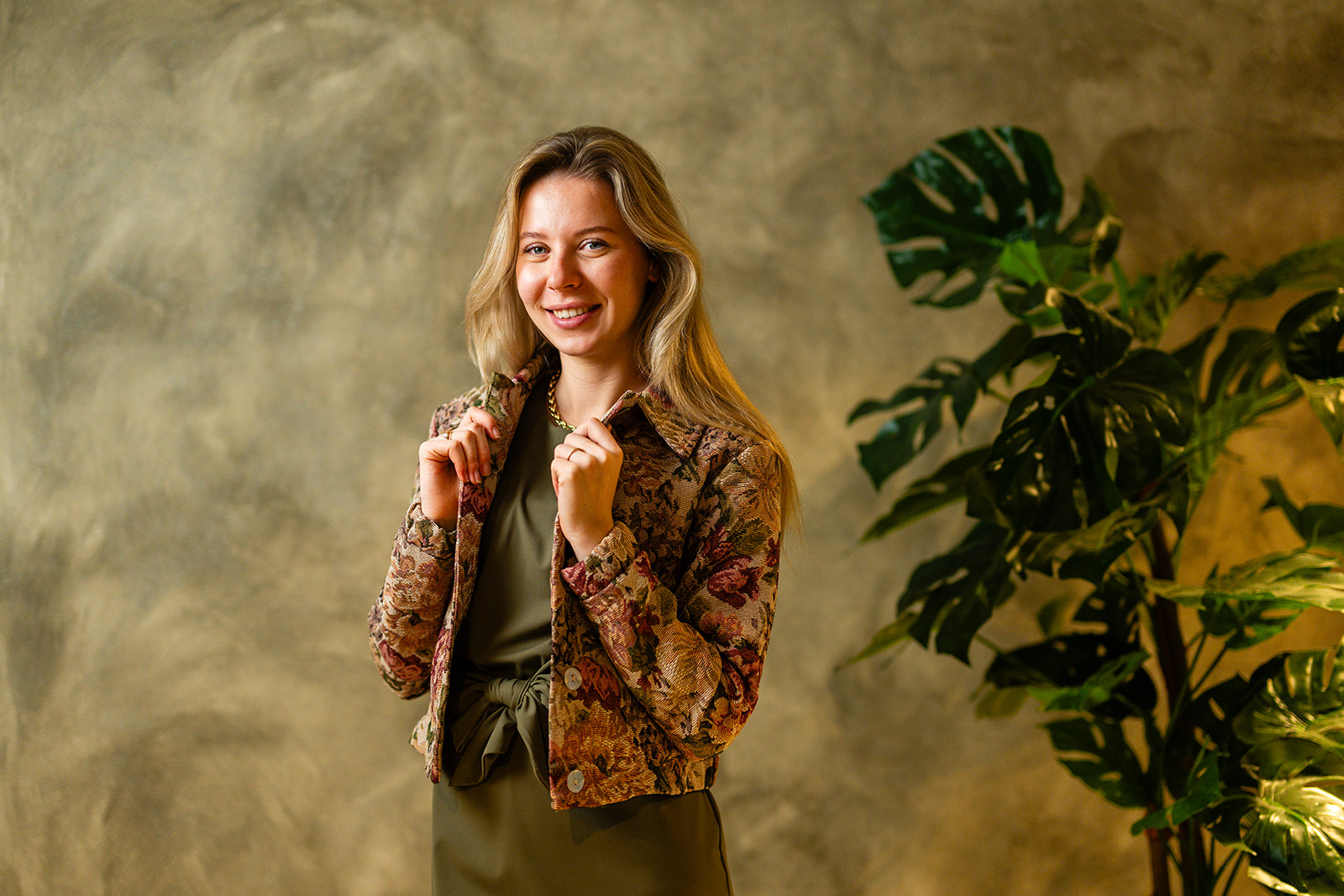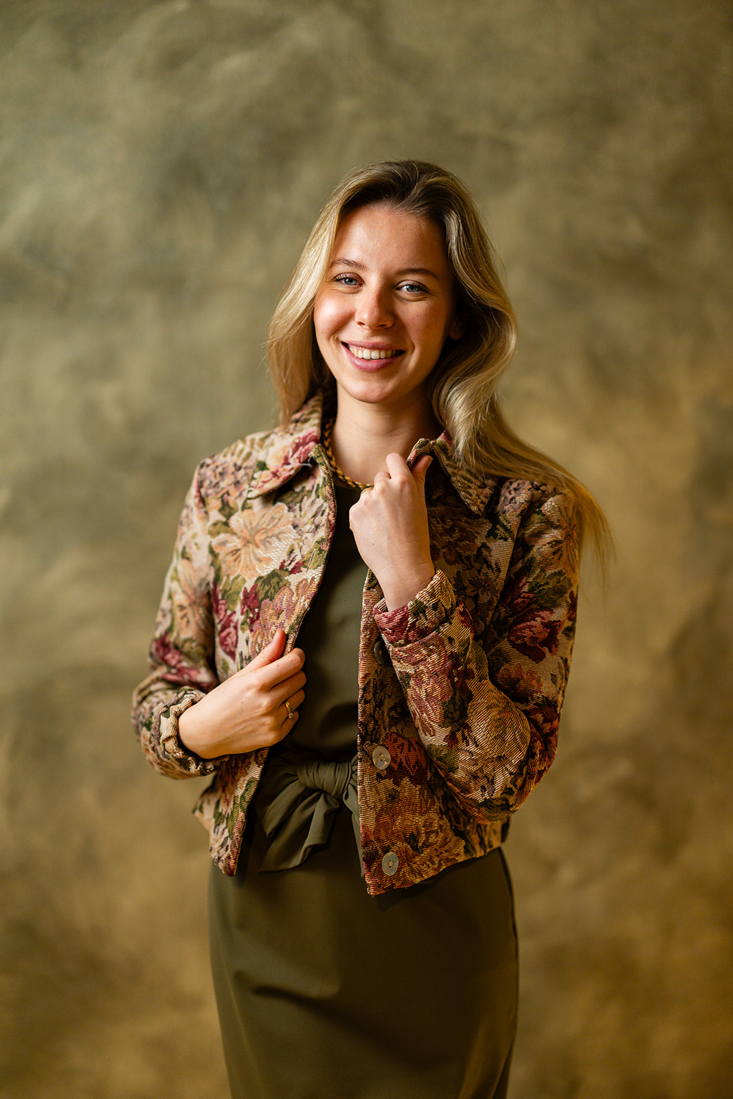 Jasje in een iets wijdervallend model, dus geen getailleerde pasvorm. Het jasje sluit middenvoor d.m.v. een knopenlijst en heeft een licht elastische boord langs de onderrand en mouwen. Dit exclusieve jasje is voorzien van een voeringstof en is gemaakt in een mooie geweven jacquard kwaliteitsstof.