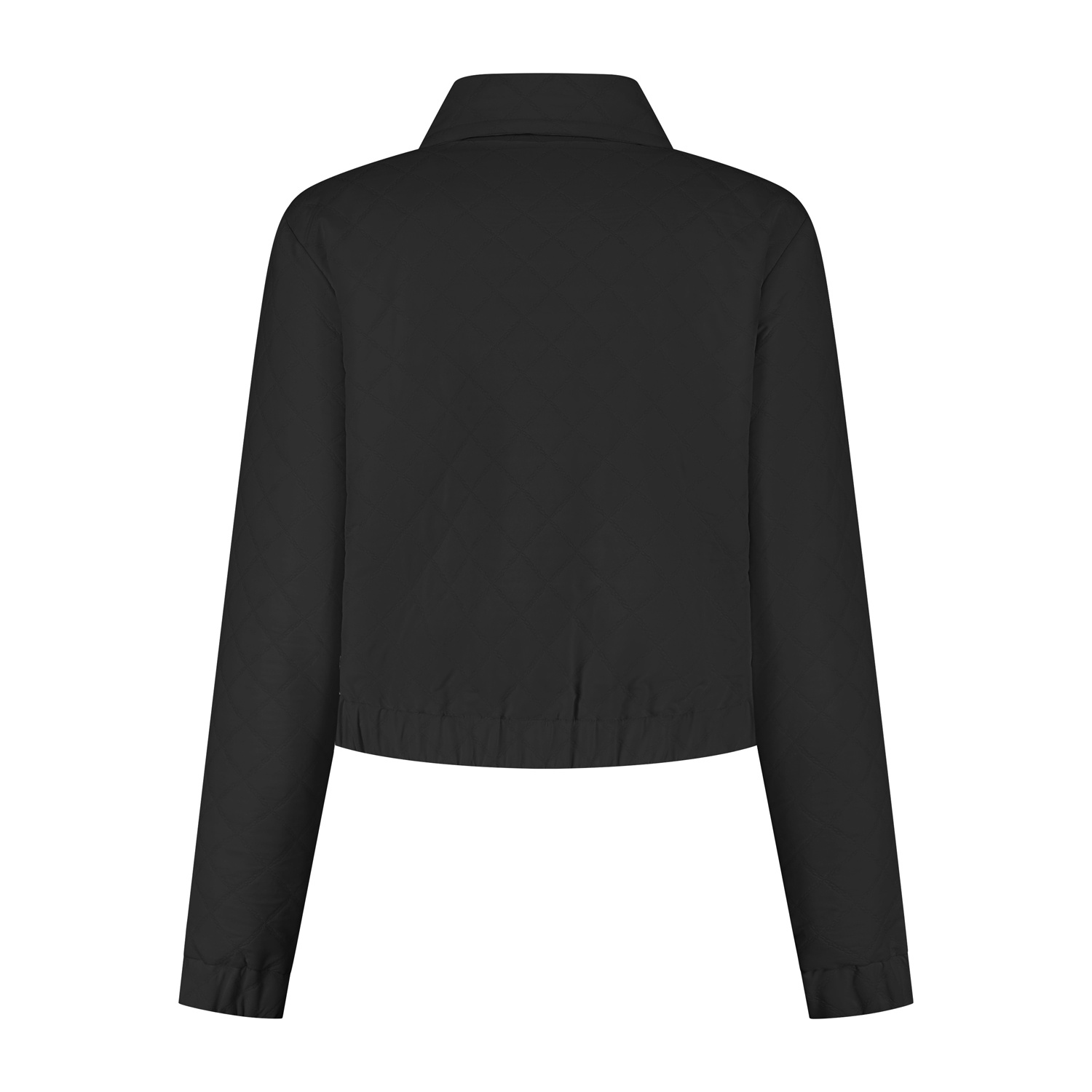 Dit stijlvolle, licht gewatteerde jasje heeft een gestikt ruitpatroon dat zorgt voor een speelse maar elegante uitstraling. De cropped pasvorm en licht getailleerde elastische boorden geven het een mo...