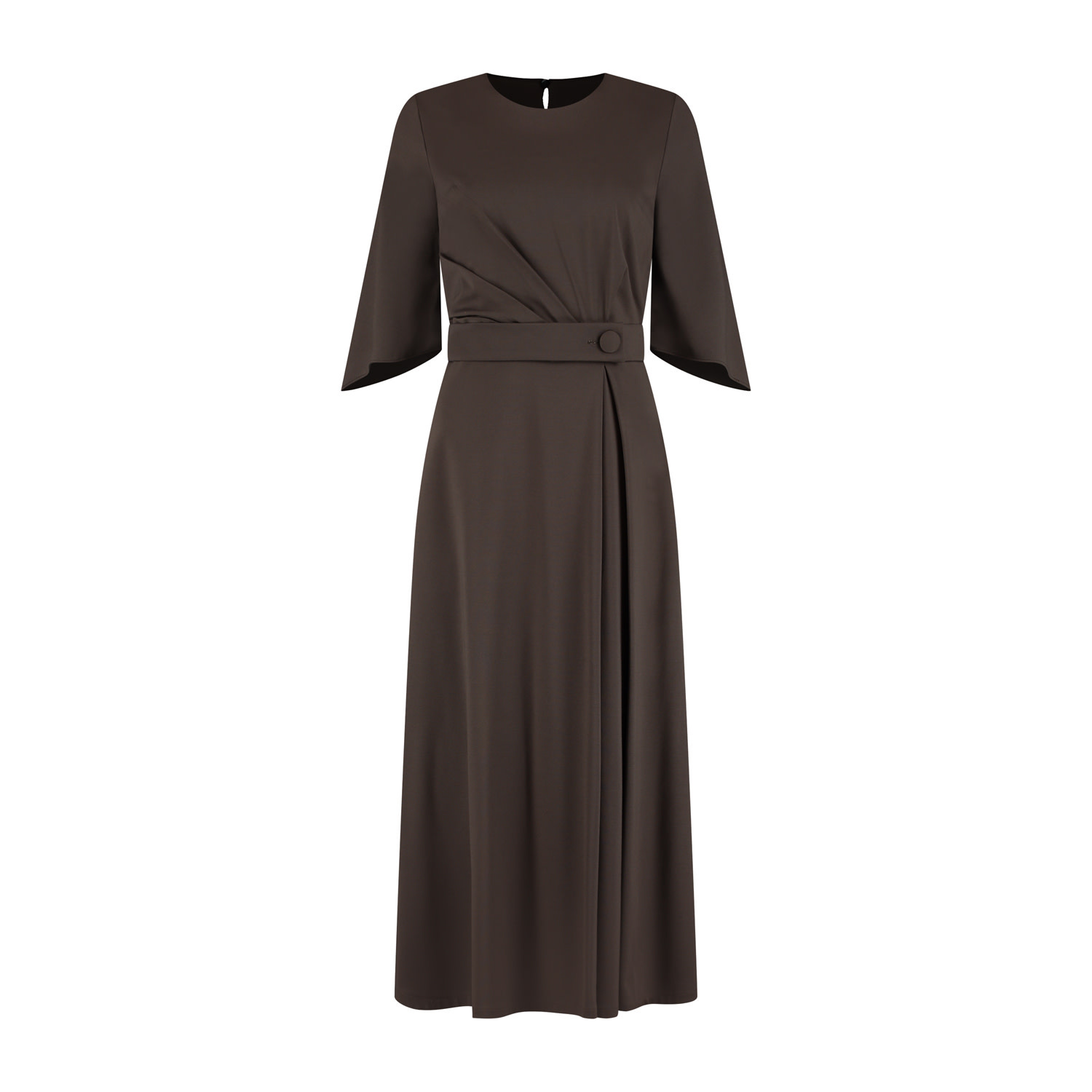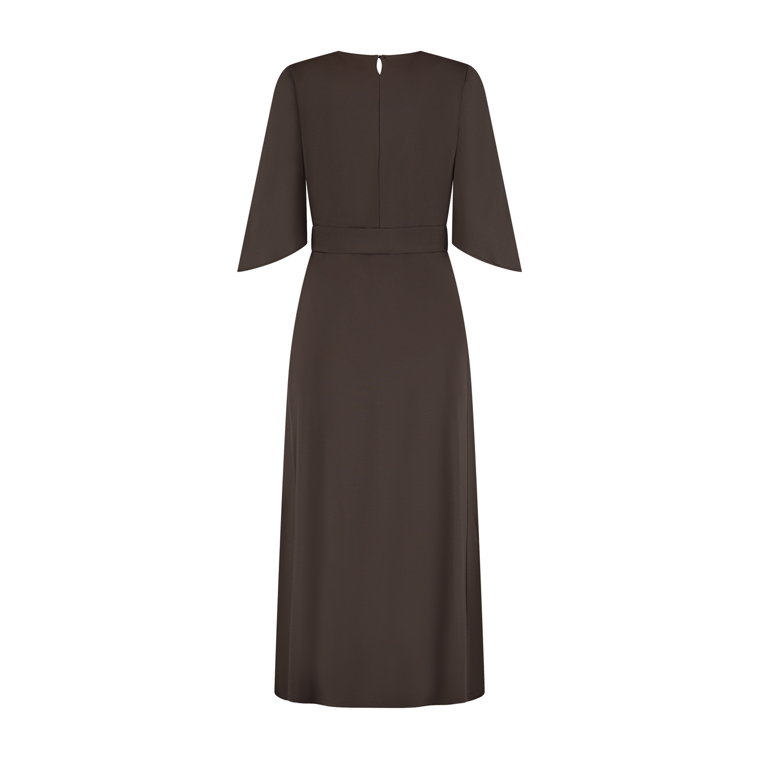 De jurk Alexia in donkerbruin is ontworpen voor vrouwen die houden van een krachtige, ingetogen uitstraling met een vrouwelijke touch. Perfect voor bijzondere gelegenheden, zakelijke events of er gewo...