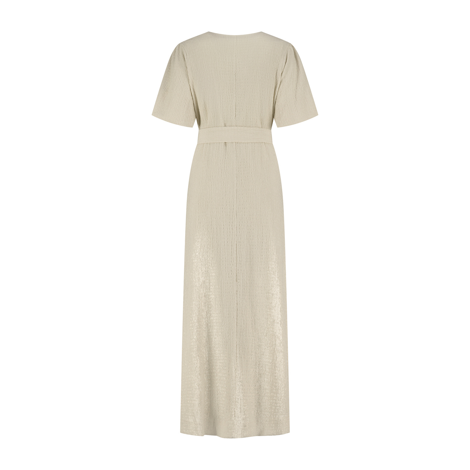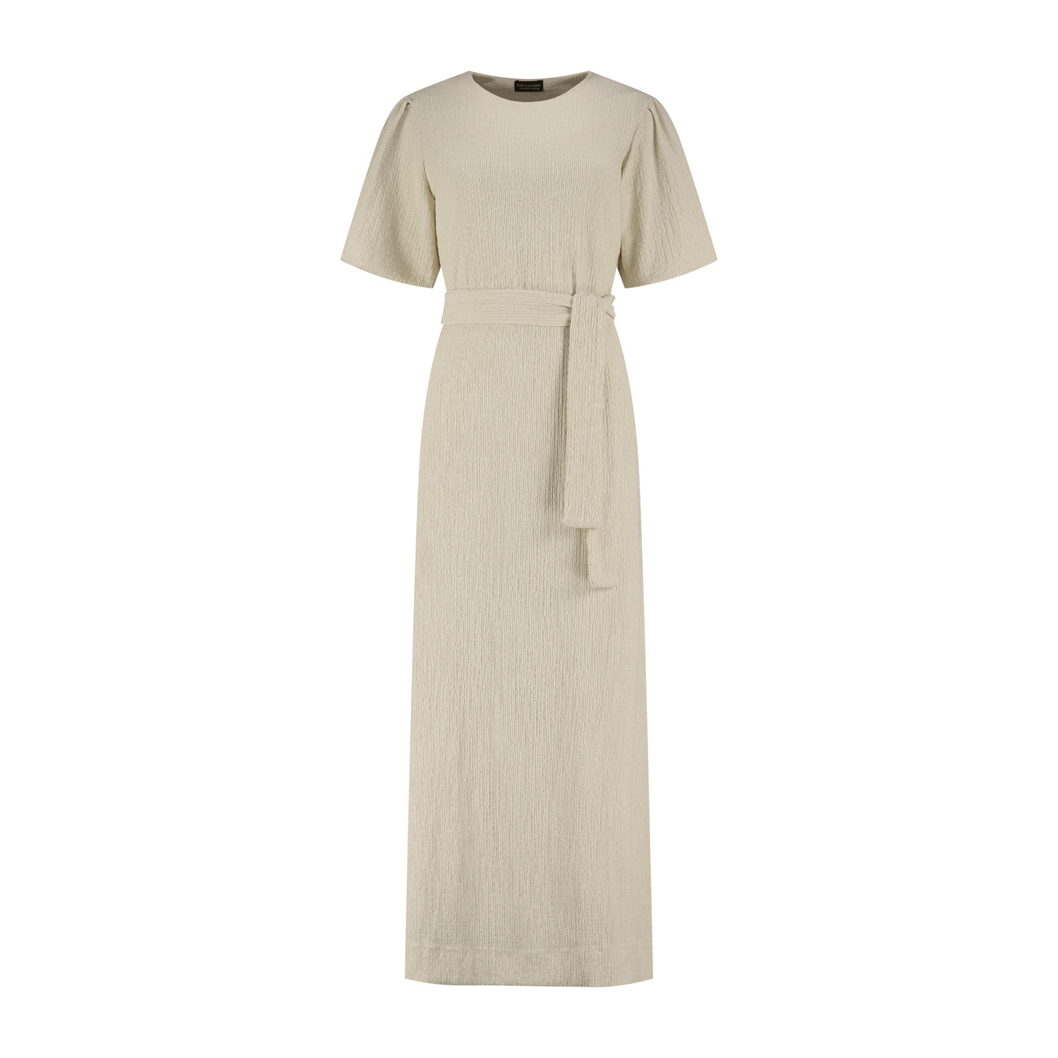 Jurk Amy ademt zachtheid en eenvoud. Een ontwerp dat niet vraagt om aandacht, maar deze vanzelf krijgt. De lange jurk wordt geaccentueerd door de strikceintuur om de taille en geeft de perfecte pasvorm. De korte ballonmouwen en de lengte van de jurk geven een elegante, verfijnde uitstraling. De jurk is voorzien van een voeringstof en is gemaakt in een mooie geweven kwaliteitsstof met reliefstructuur.