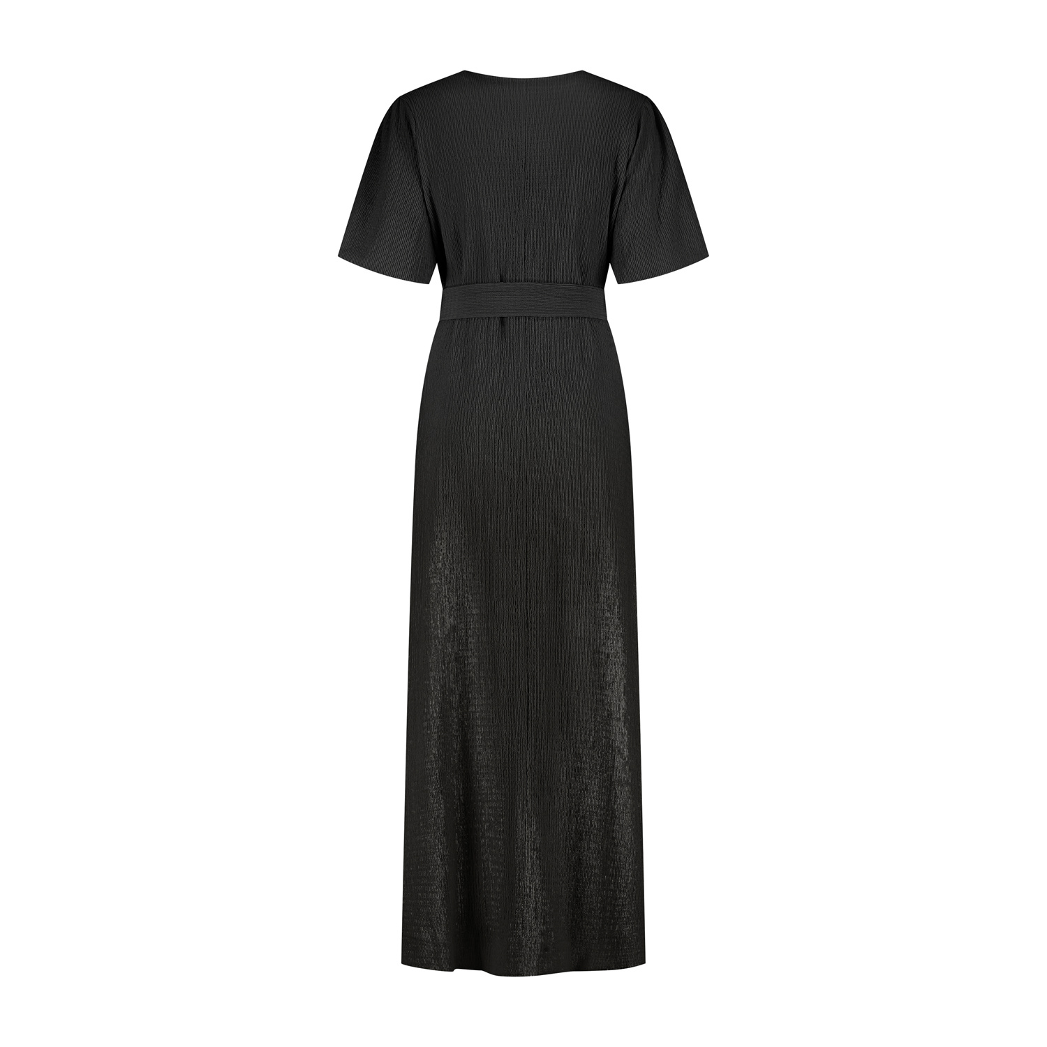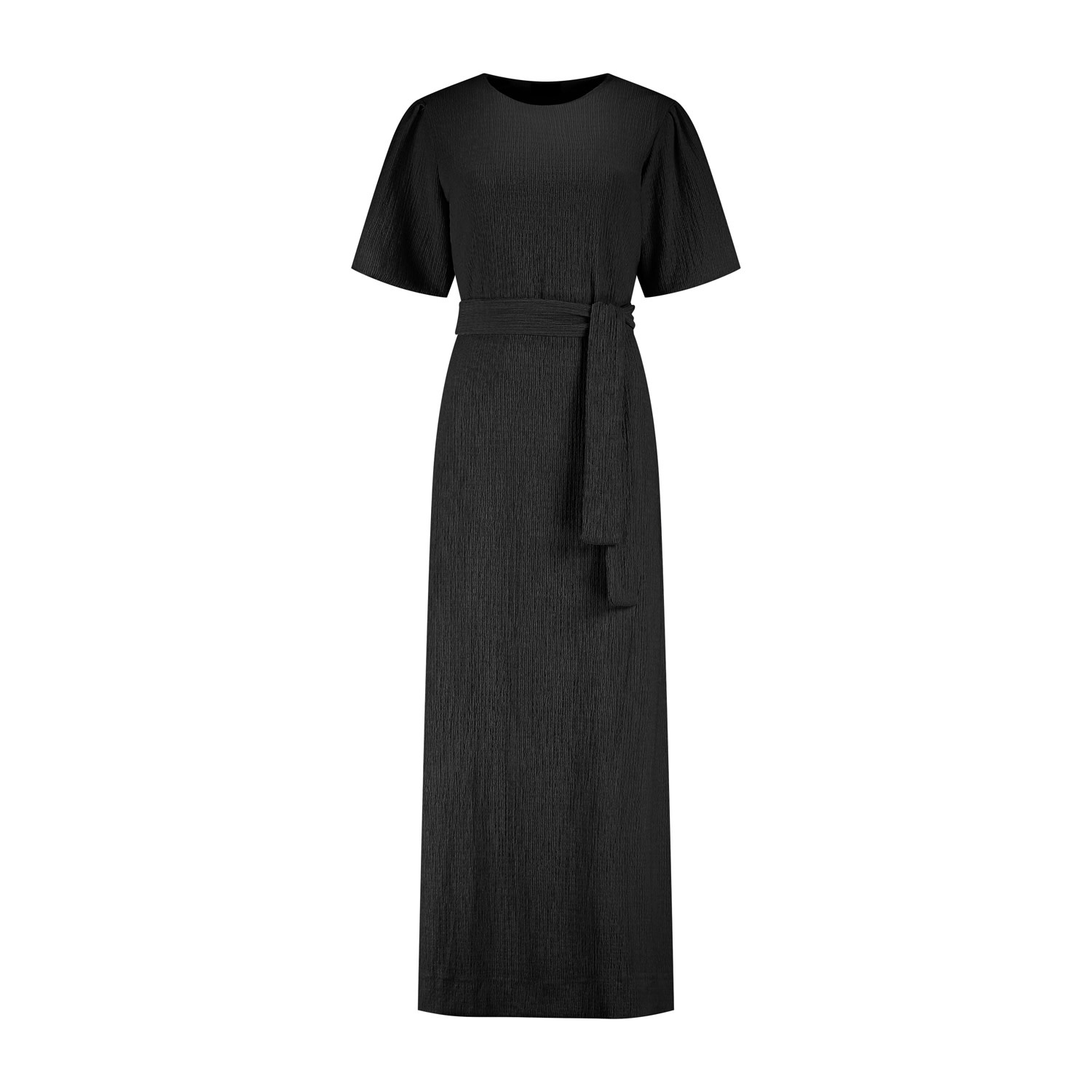 Jurk Amy ademt zachtheid en eenvoud. Een ontwerp dat niet vraagt om aandacht, maar deze vanzelf krijgt. De lange jurk wordt geaccentueerd door de strikceintuur om de taille en geeft de perfecte pasvorm. De korte ballonmouwen en de lengte van de jurk geven een elegante, verfijnde uitstraling. De jurk is voorzien van een voeringstof en is gemaakt in een mooie geweven kwaliteitsstof met reliefstructuur.
