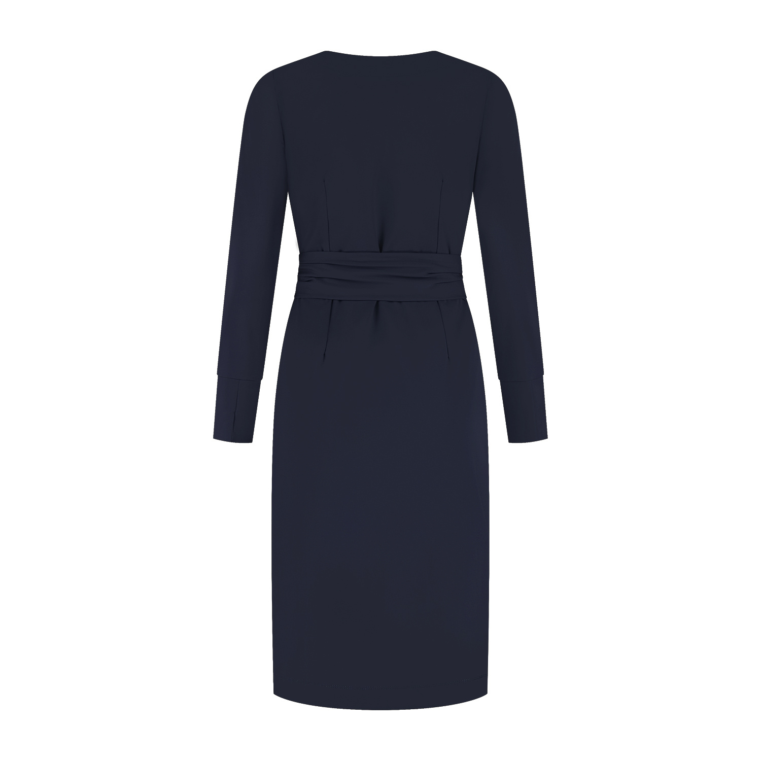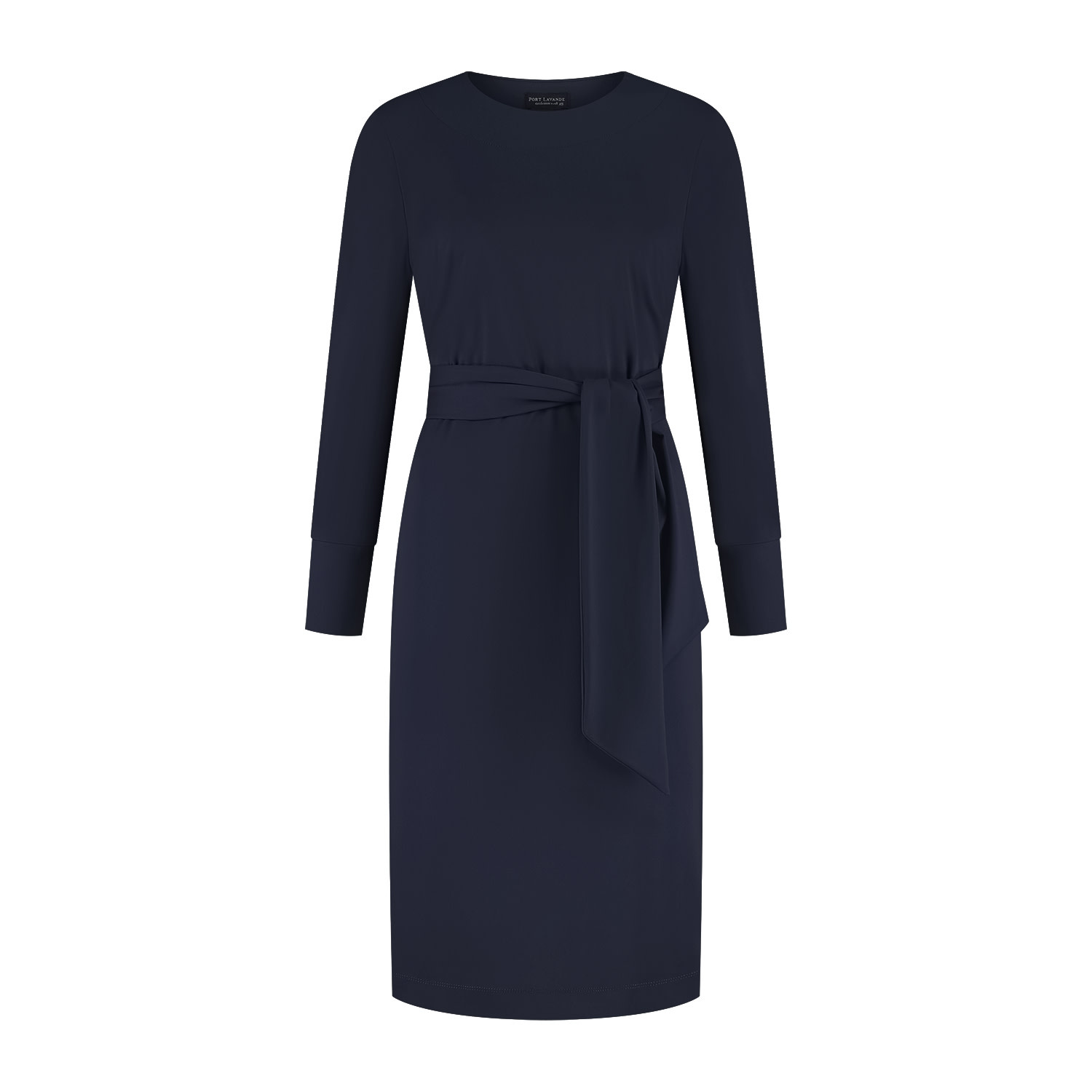 Jurk Doortje straalt rust en eenvoud uit. De donkerblauwe kleur, rechte belijning en de mooie rondehalslijn geven de jurk een exclusief en verfijnde uitstraling. De jurk heeft een strikceintuur om de taille die op verschilldende manieren gestrikt/geknoopt kan worden. De jurk Doortje heeft 7/8 mouwen en is gemaakt in een mooie stevige comfortabele travel kwaliteitsstof. Kortom;dit is een jurk die je zonder nadenken aantrekt en waarin je je meteen verzorgd voelt. Ontworpen om lang deel uit te maken van je garderobe.