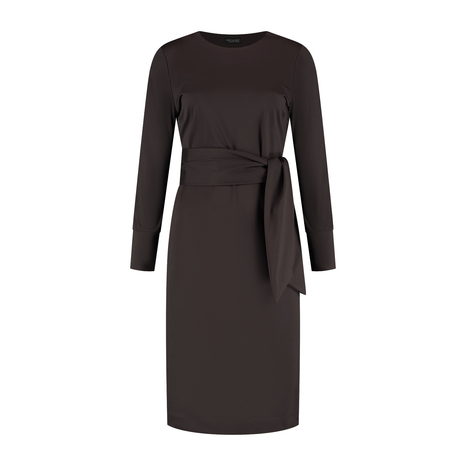 Jurk Doortje straalt rust en eenvoud uit. De donkerbruine kleur, rechte belijning en de mooie rondehalslijn geven de jurk een exclusief en verfijnde uitstraling. De jurk heeft een strikceintuur om de taille die op verschilldende manieren gestrikt/geknoopt kan worden. De jurk Doortje heeft 7/8 mouwen en is gemaakt in een mooie stevige comfortabele travel kwaliteitsstof. Kortom;dit is een jurk die je zonder nadenken aantrekt en waarin je je meteen verzorgd voelt. Ontworpen om lang deel uit te maken van je garderobe.
