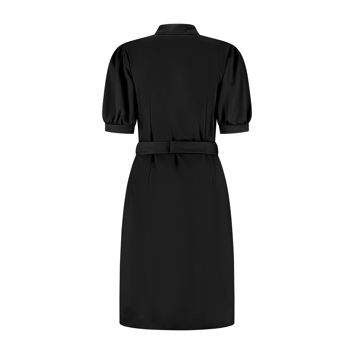 Jurk Meike combineert klassieke details met de rustige elegantie waar Port Lavande voor staat. De zwarte kleur geeft de jurk een chique uitstraling en maakt haar een exclusief item binnen je garderobe. De doorknoopsluiting en opstaande kraag zorgen voor een verfijnde, vrouwelijke look, terwijl de korte pofmouwen een subtiel speels accent toevoegen. Met de bijpassende ceintuur accentueer je de taille op een natuurlijke manier. Jurk Meike weerspiegelt het Port Lavande-DNA: rustig, verfijnd en met oog voor blijvende stijl. Deze jurk is gemaakt in een stevige stretch kwaliteitsstof met een lichte ribstructuur.