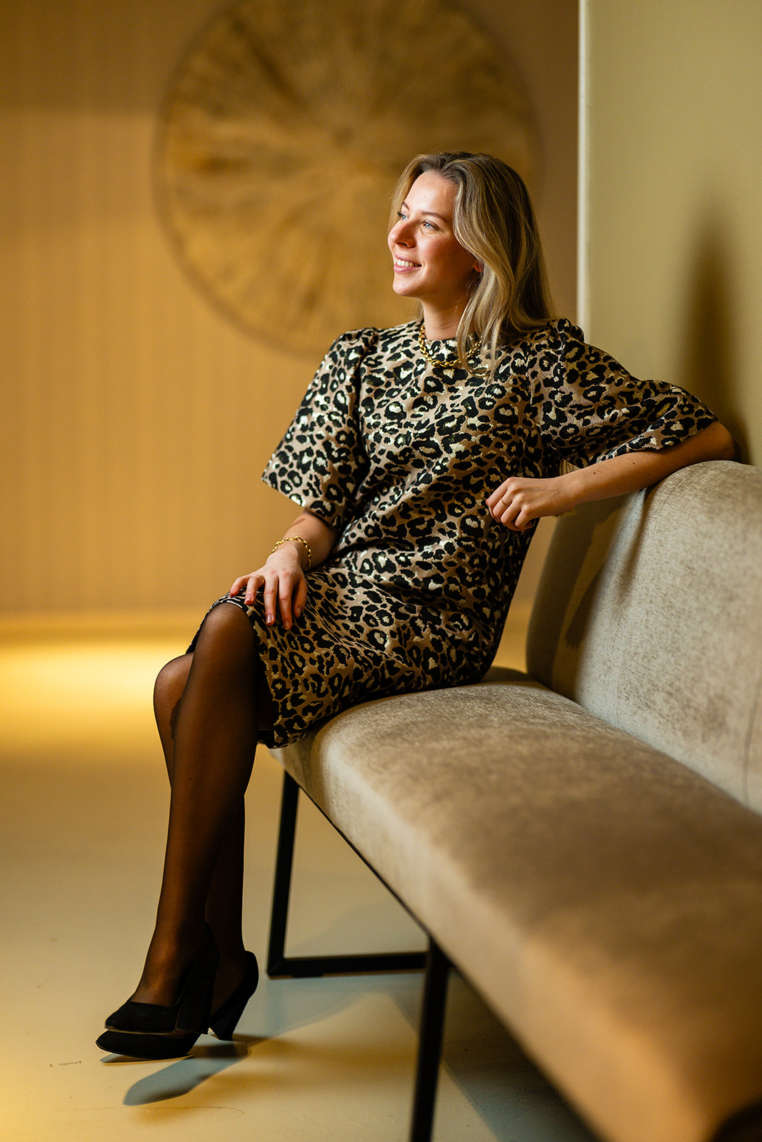 Jurk Rebecca is een elegante zand-bruin getinte damesjurk met print die direct opvalt door haar verfijnde dessin en vrouwelijke belijning. De zachte bruintinten in combinatie met het patroon geven de ...