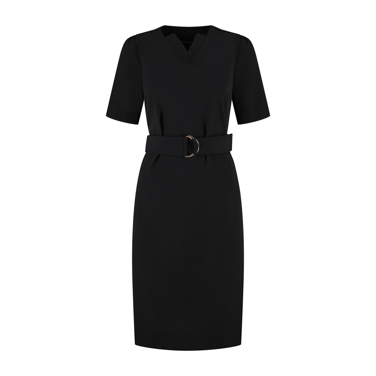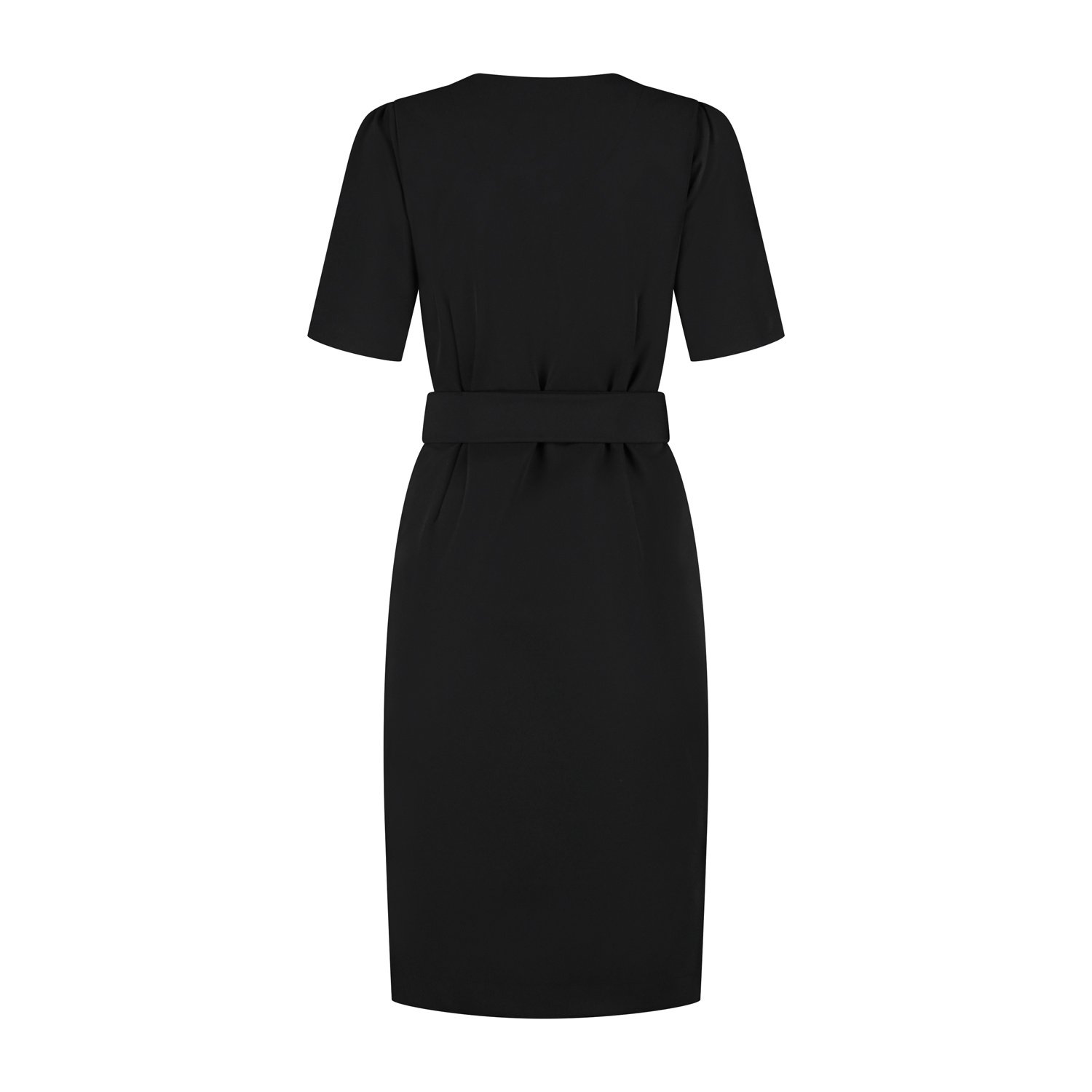 De jurk Sofie in zwart van Port Lavande is een moderne klassieker met een verfijnde uitstraling. De jurk heeft een mooie dubbele V-halslijn en subtiele rimpeling in de korte mouwen. De bijpassende cei...