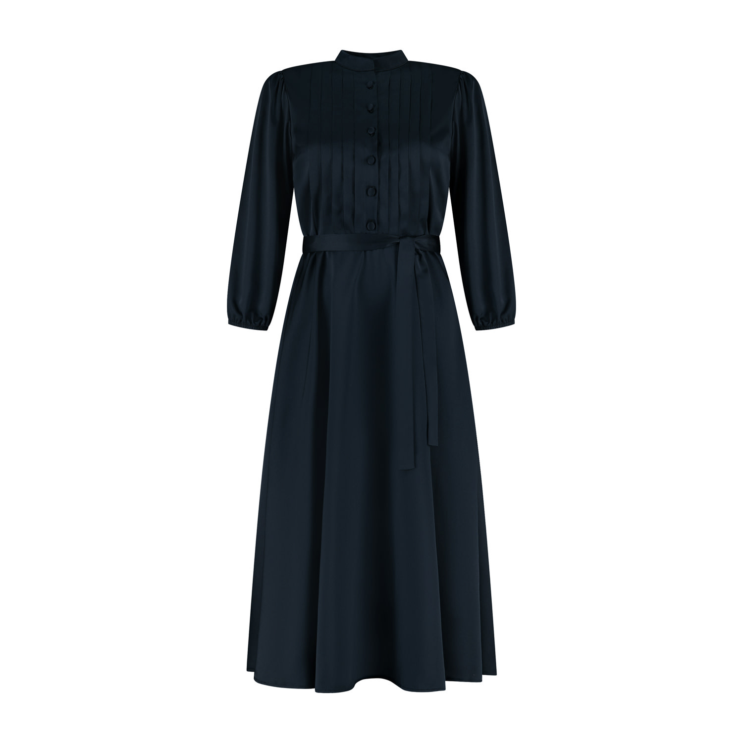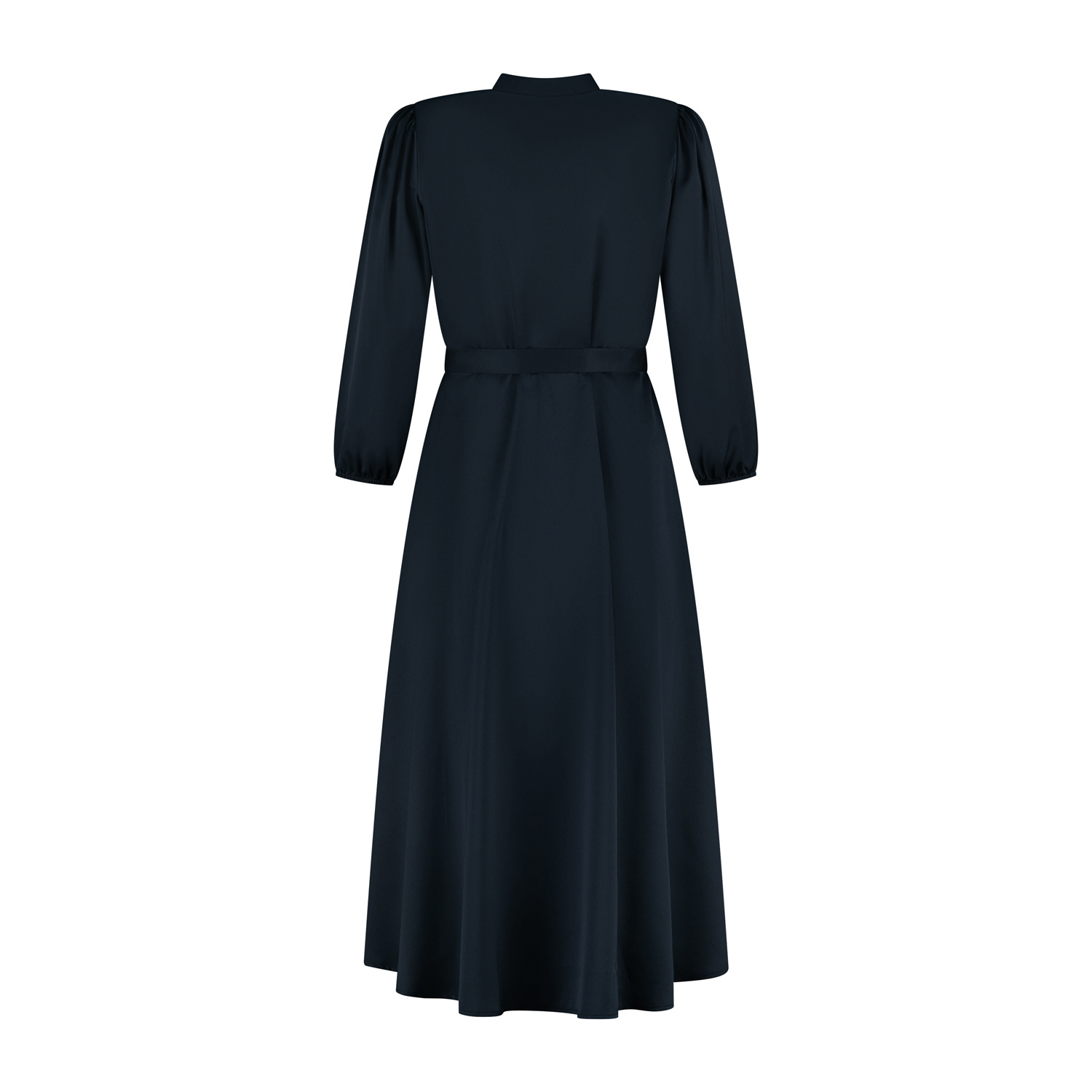 Deze jurk Tara is ontworpen met oog voor detail en is een veelzijdige toevoeging aan elke garderobe. De jurk heeft een vrouwelijke, licht getailleerde pasvorm die mooi wordt geaccentueerd door...Deze jurk Tara is ontworpen met oog voor detail en is een veelzijdige toevoeging aan elke garderobe. De jurk heeft een vrouwelijke, licht getailleerde pasvorm die mooi wordt geaccentueerd door de bijpassende strikceintuur in de taille. De ingelegde plooien op het voorpand, het kraagboordje en de stofknoopsluiting tot aan de hals geven het ontwerp een klassieke, luxe uitstraling. De 7/8 mouwen met elastisch bandje zorgen voor een elegante en comfortabele fit. Jurk Tara is gemaakt van een soepelvallende satijnlookstof met een lichte glans en is geheel voorzien van een voeringstof. De midi-lengte maakt de jurk geschikt voor zowel dagelijkse momenten als meer geklede gelegenheden.KleurdonkerblauwMateriaal100% polyesterMerkPort LavandeWasadviesfijnwas programma max. 30°C - hangend drogenMaatadvieszie onderstaande tabel, afmetingen zijn een indicatie.MaatTaillewijdteHeupwijdteAchterlengteMouwlengteXXS7511012050XS8011512050S8512012050M9012512050L9513012050XL10113512050XXL10814012050XXXL11514512050 Toon meerToon minder