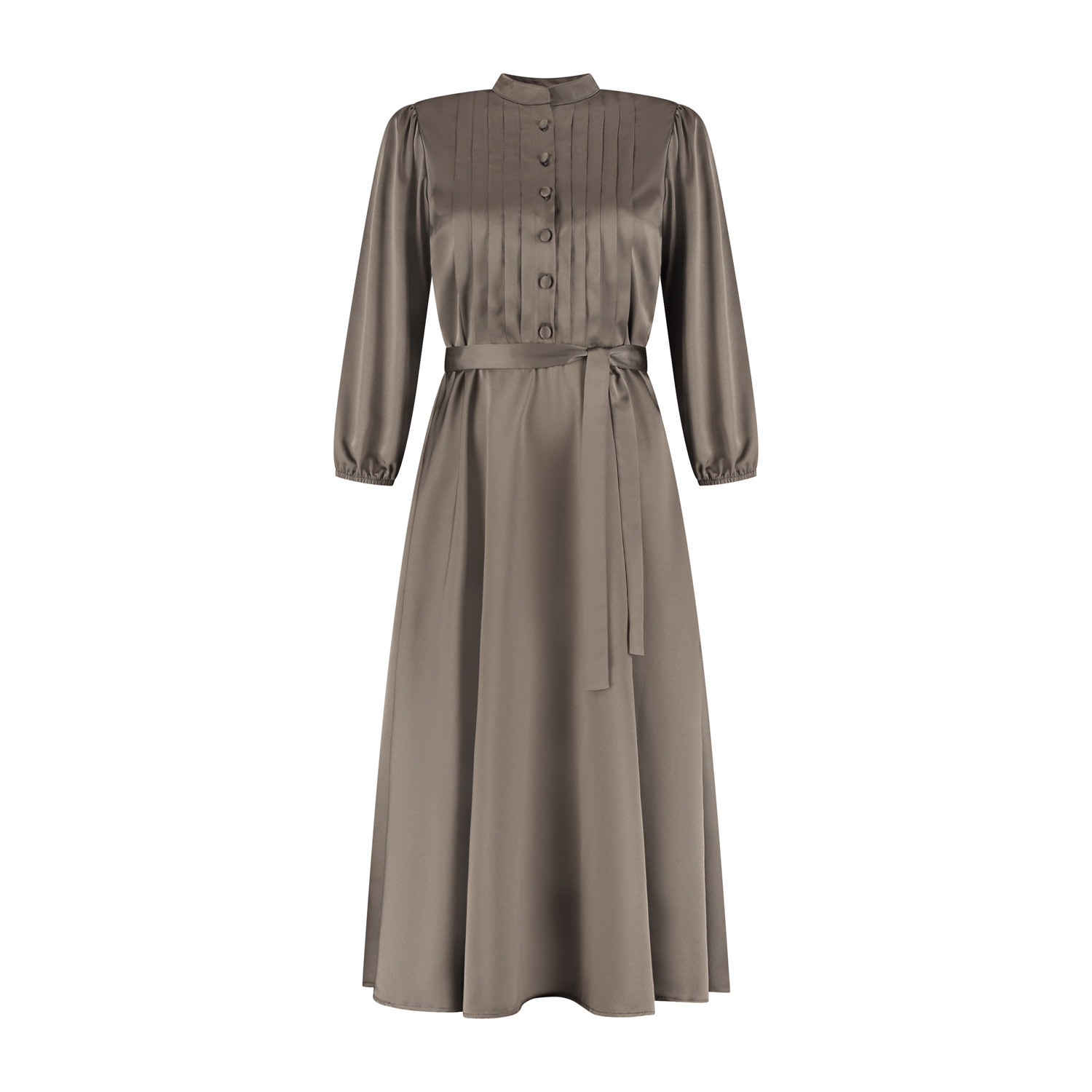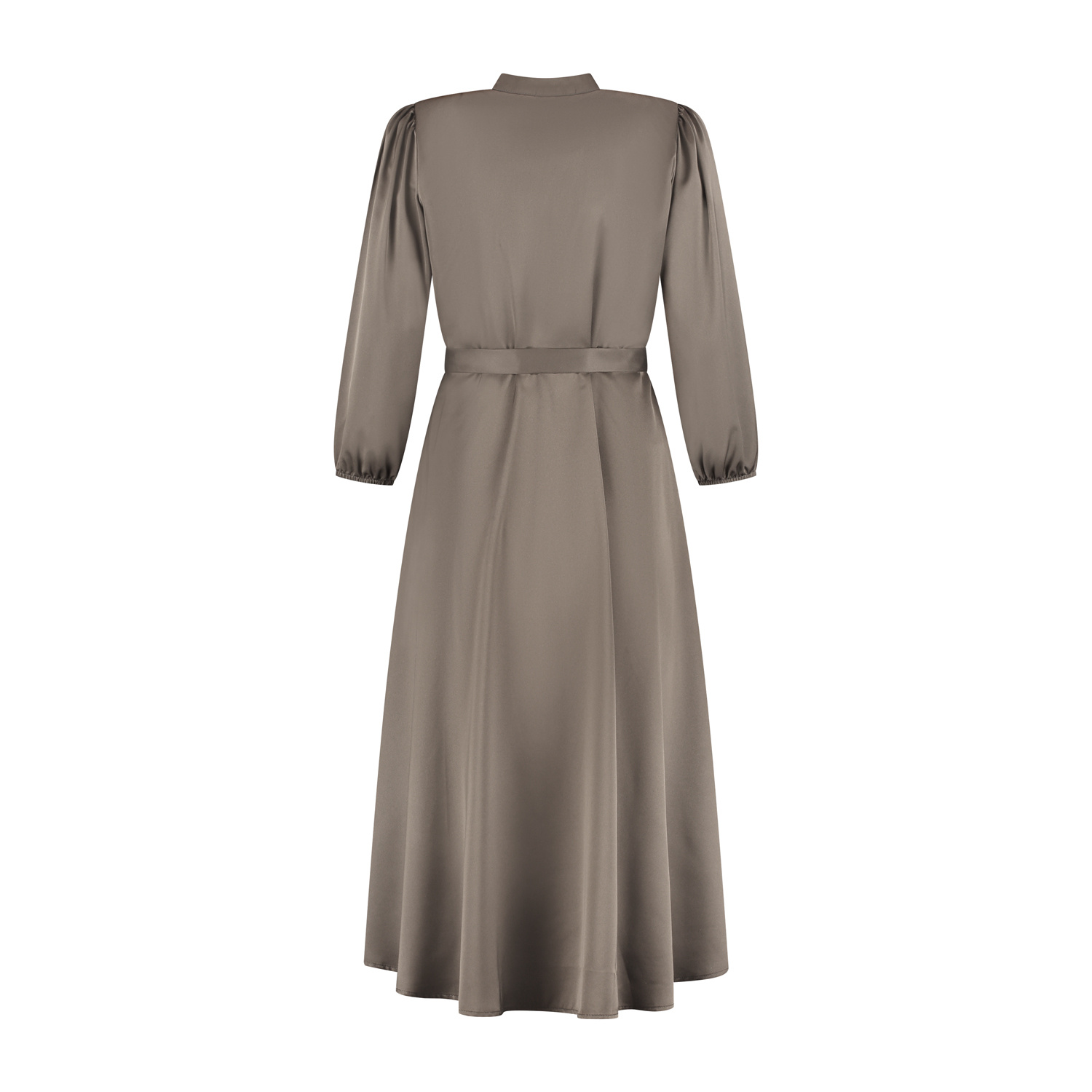 Deze jurk Tara is ontworpen met oog voor detail en is een veelzijdige toevoeging aan elke garderobe. De jurk heeft een vrouwelijke, licht getailleerde pasvorm die mooi wordt geaccentueerd door...Deze jurk Tara is ontworpen met oog voor detail en is een veelzijdige toevoeging aan elke garderobe. De jurk heeft een vrouwelijke, licht getailleerde pasvorm die mooi wordt geaccentueerd door de bijpassende strikceintuur in de taille. De ingelegde plooien op het voorpand, het kraagboordje en de stofknoopsluiting tot aan de hals geven het ontwerp een klassieke, luxe uitstraling. De 7/8 mouwen met elastisch bandje zorgen voor een elegante en comfortabele fit. Jurk Tara is gemaakt van een soepelvallende satijnlookstof met een lichte glans en is geheel voorzien van een voeringstof. De midi-lengte maakt de jurk geschikt voor zowel dagelijkse momenten als meer geklede gelegenheden.KleurtaupeMateriaal100% polyesterMerkPort LavandeWasadviesfijnwas programma max. 30°C - hangend drogenMaatadvieszie onderstaande tabel, afmetingen zijn een indicatie.MaatTaillewijdteHeupwijdteAchterlengteMouwlengteXXS7511012050XS8011512050S8512012050M9012512050L9513012050XL10113512050XXL10814012050XXXL11514512050 Toon meerToon minder