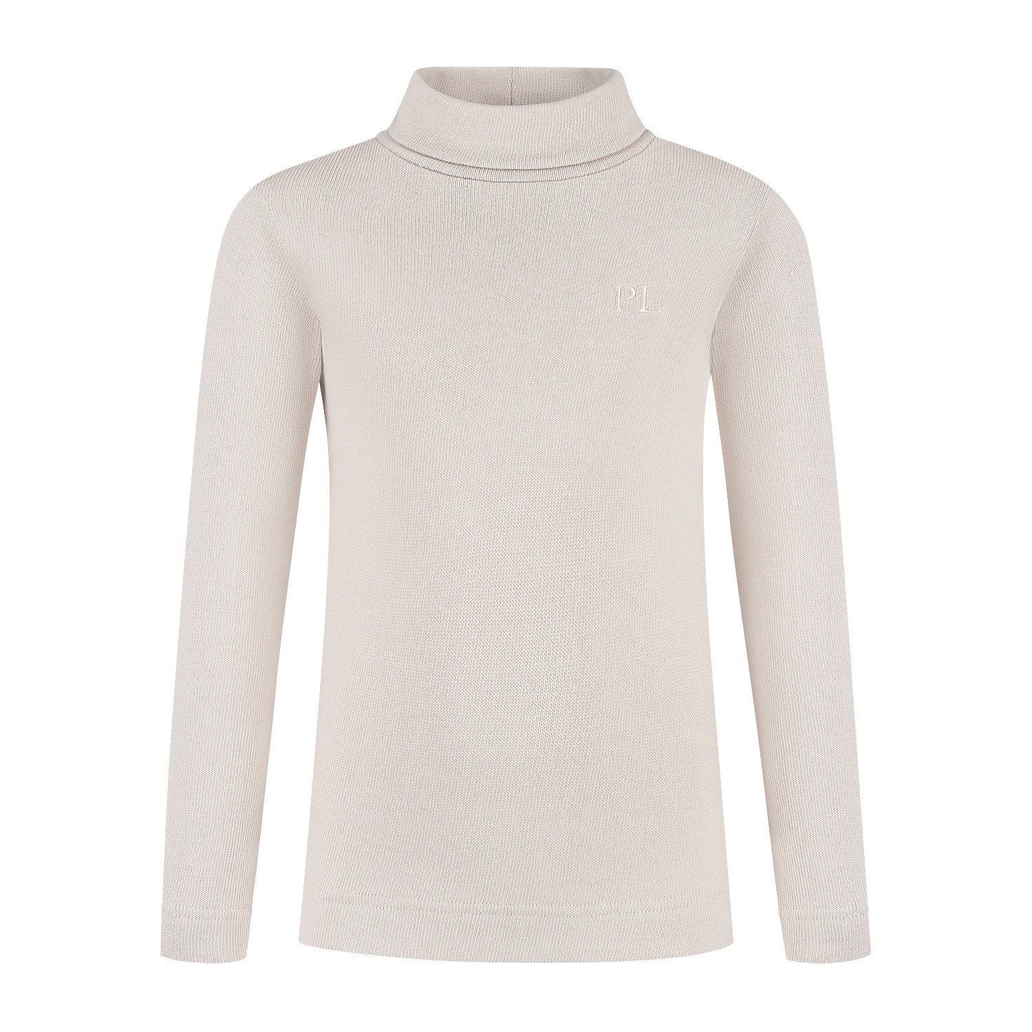 Koltrui met ton sur ton PL borduurtje op de borst. De koltrui is gemaakt in een fijn gebreide katoenen kwaliteitsstof.