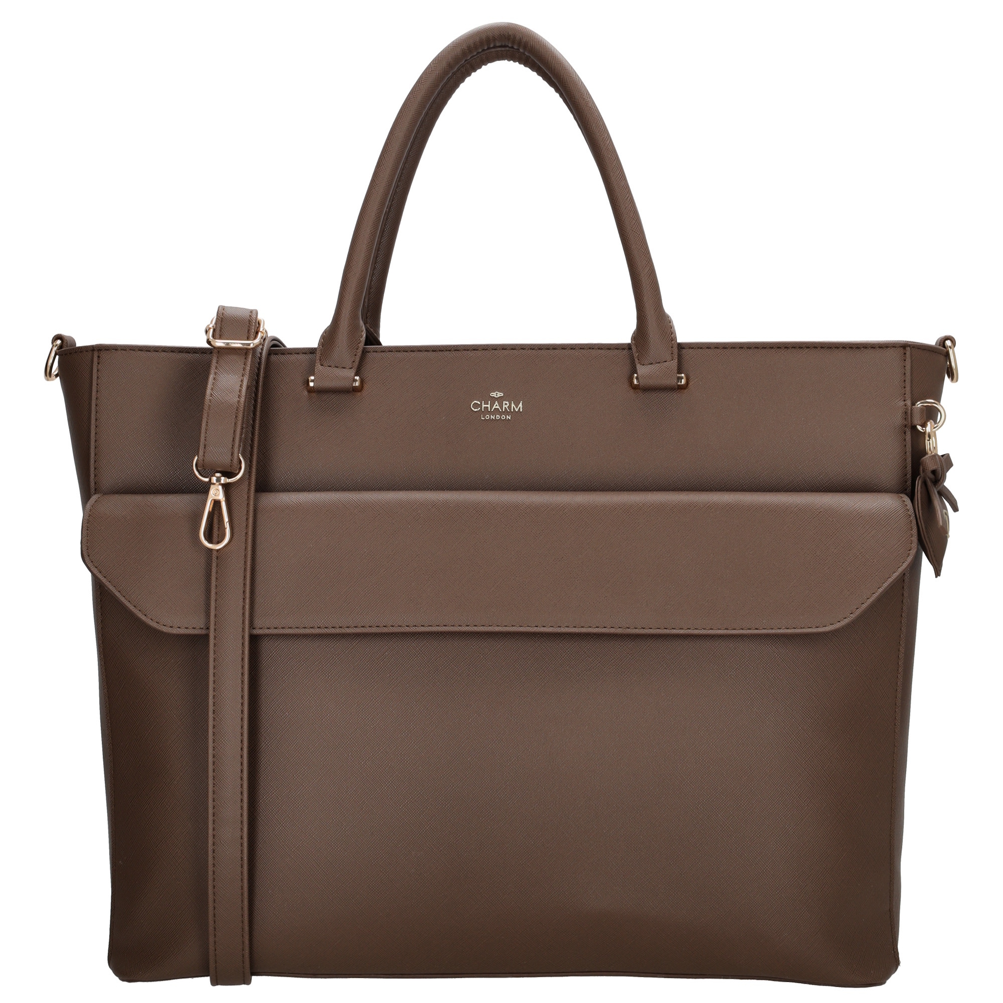 De Charm London Cambridge laptoptas is een stijlvolle shopper en perfect voor werk of studie. De tas is afsluitbaar met een rits en heeft een ruim interieur met slimme opbergmogelijkheden....De Charm London Cambridge laptoptas is een stijlvolle shopper en perfect voor werk of studie. De tas is afsluitbaar met een rits en heeft een ruim interieur met slimme opbergmogelijkheden. Binnenin vind je een gewatteerd laptopvak voor een 15,6 inch laptop, een flessenvak, twee insteekvakken, pennenvakken, een ritsvak en een handig haakje om je sleutels aan te bevestigen. Aan de voorkant zit een extra vak met overslag voor spullen die je snel bij de hand wilt hebben. De tas wordt geleverd met een verstelbare en afneembare schouderband en is voorzien van een leuke sleutelhanger als extra detail.KleurmokkaMateriaalimitatielederMerkCharm LondonAfmeting (bxdxh)46 x 13 x 32Toon meerToon minder