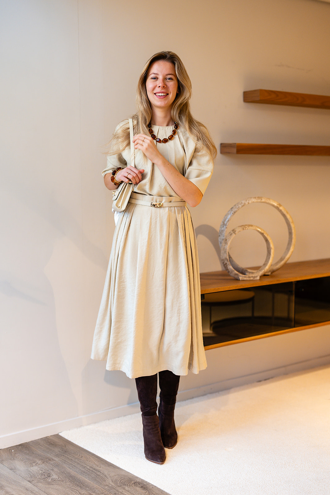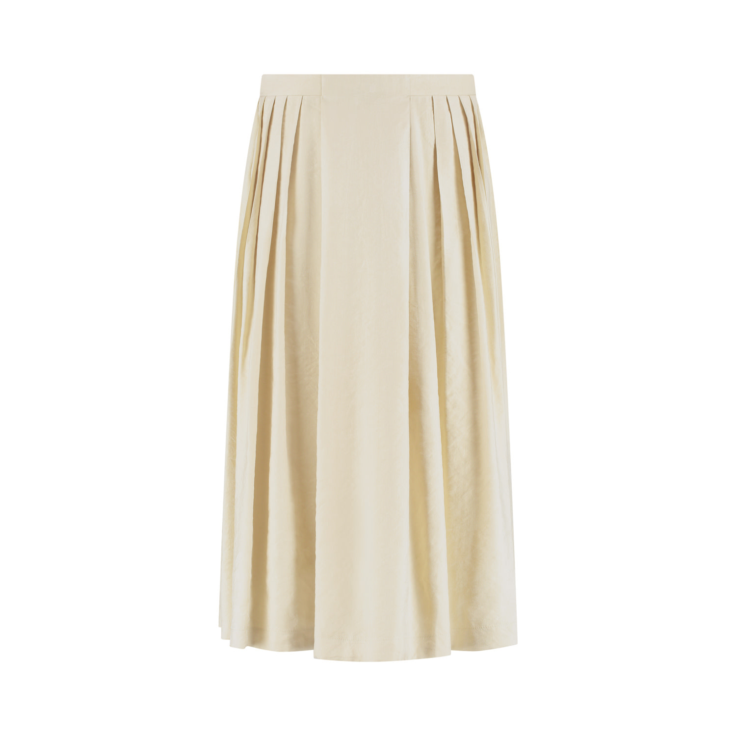 Rok Bowie is een ode aan vrouwelijke elegantie. De verfijnde plooien geven de rok een chique uitstraling, terwijl de vanille kleur zorgt voor rust en eenvoud. Een ontwerp dat niet opvalt door te schreeuwen, maar door zijn stille kracht en gemaakt is in een chique viscose kwaliteitsstof met een vleugje glans. Deze rok Bowie is voorzien van een voeringstof en sluit middenachter d.m.v. een blinde rits. De rok is zowel comfortabel als stijlvol en bijzonder genoeg voor speciale momenten.