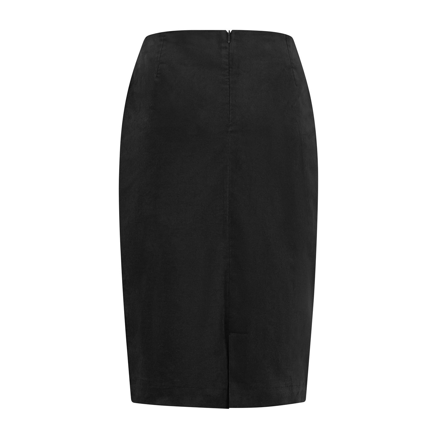 Rok met aangeknipte taille (zonder taillepas) en drie kleine paspels op de zij- voorkant. De rok sluit middenachter doormiddel van een blinde rits en is voorzien van een voering en loopsplit. Deze rok is gemaakt in een mooie velourse kwaliteitsstof.