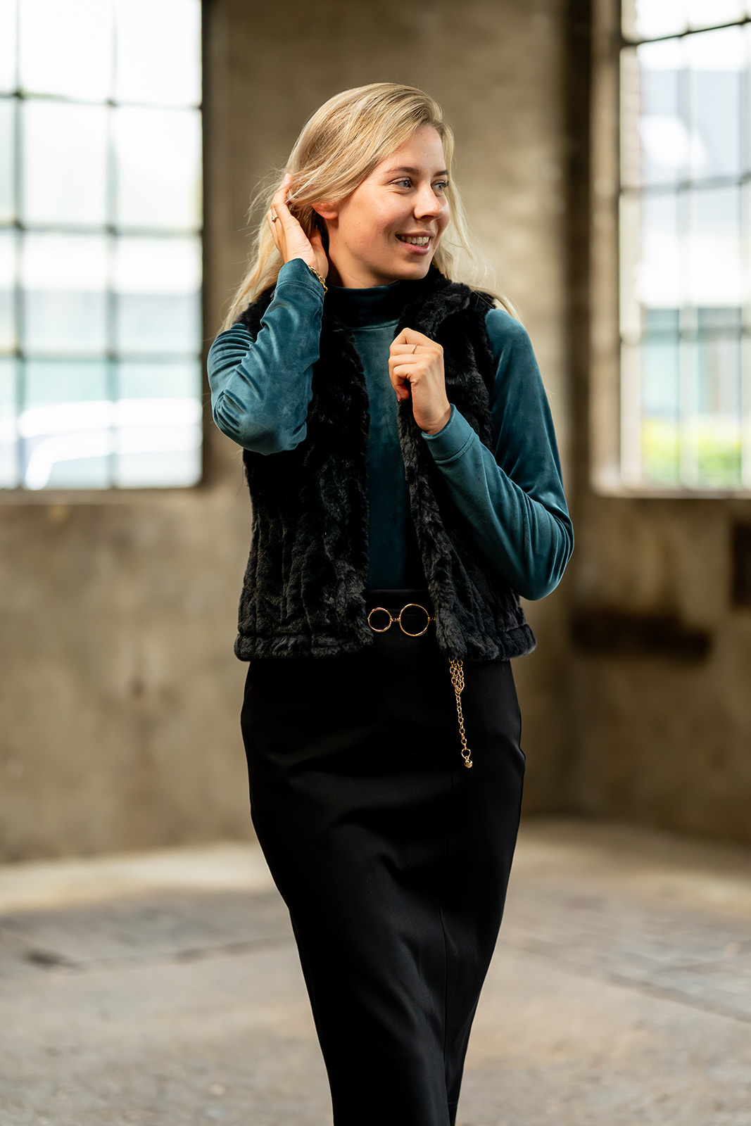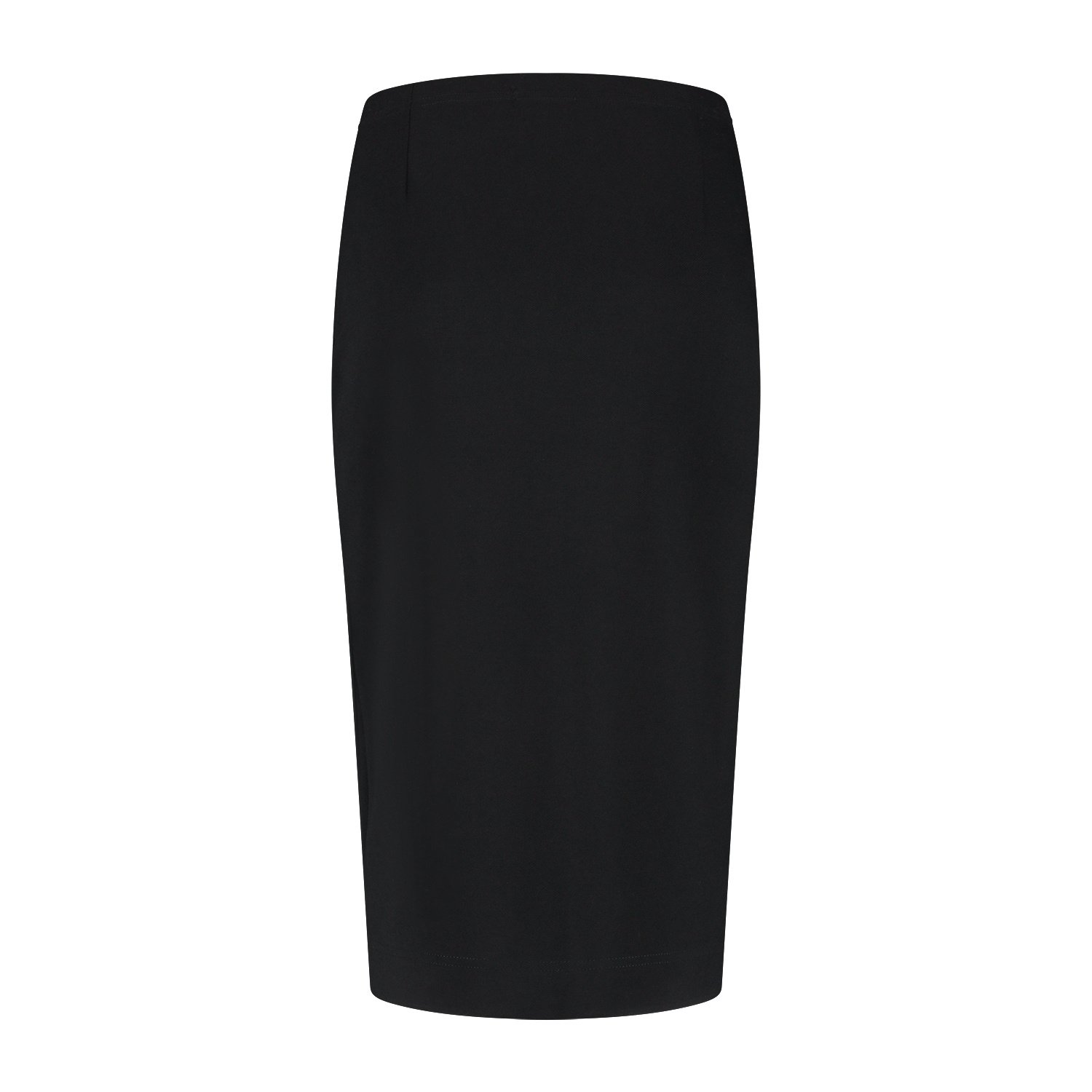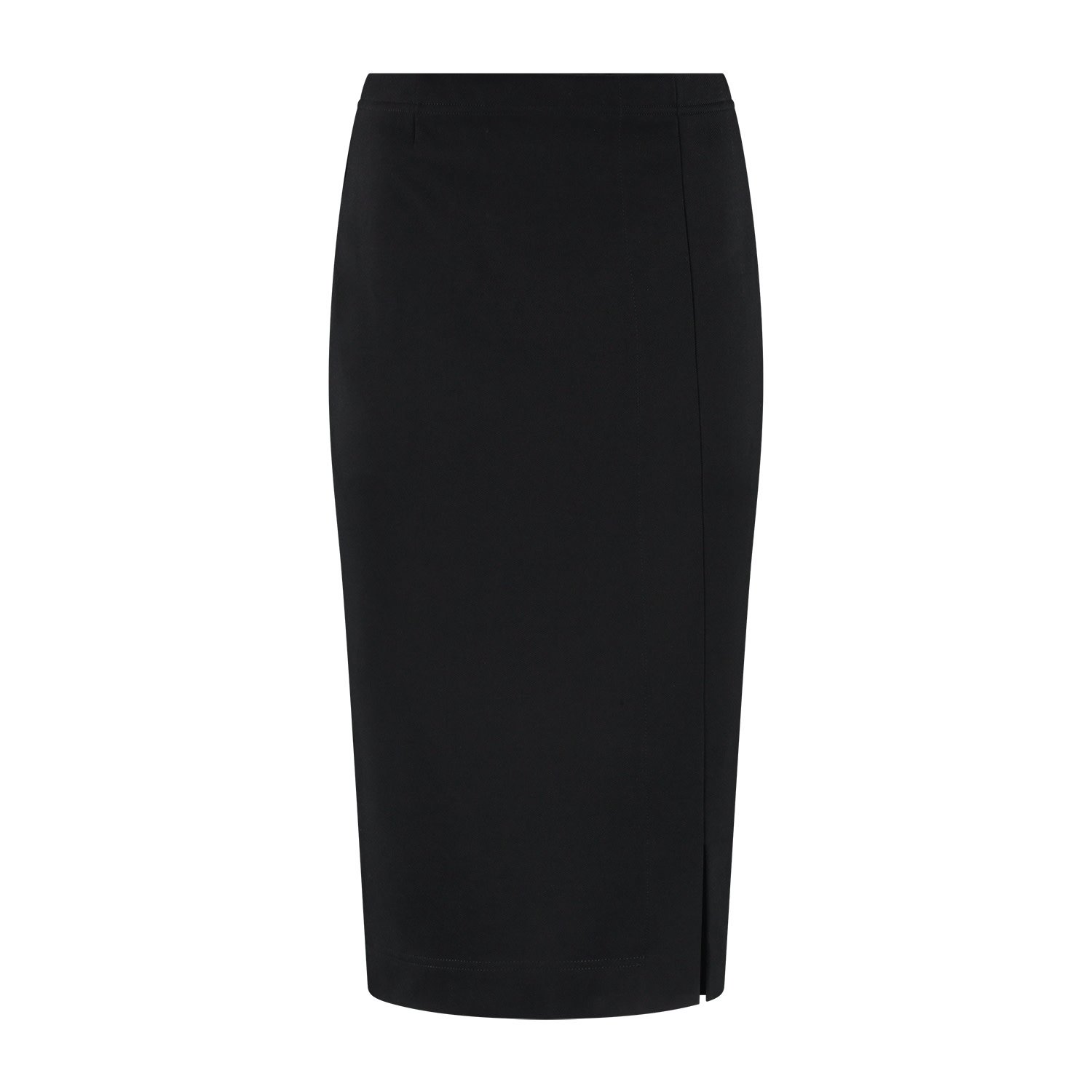 Voeg een vleugje klasse toe aan uw garderobe met deze prachtige zwarte midi kokerrok. Met haar tijdloze ontwerp en mooie pasvorm is deze rok een perfect item voor dagelijkse en diverse gelegenheden. Gemaakt van een licht elastische hoogwaardige stof met een lichte ribstructuur, biedt deze rok een perfecte balans tussen stijl en comfort. De kleine split aan de zij-voorzijde zorgt voor extra bewegingsvrijheid, terwijl de nette smalle elastische tailleband zorgt voor een perfecte fit. Veelzijdig te combineren met zowel een chique blouse en jasje als ook met een sportief coltruitje.
