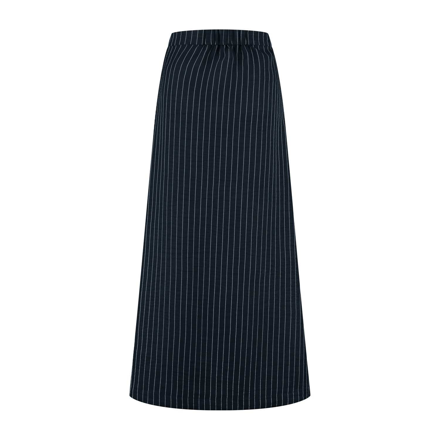 De rok Lena in donkerblauw met een offwhite krijtstreepje is een échte toevoeging aan je garderobe, elegant in haar eenvoud. De lange, licht uitlopende pasvorm zorgt voor een vrouwelijk silhouet, terwijl de fijne verticale streep een subtiel verlengend effect geeft. De rok is uitgevoerd in een comfortabele, soepelvallende linnenlook stof die mooi met je meebeweegt. Het stukje elastische tailleband aan de achterzijde biedt extra draagcomfort en een perfecte aansluiting in de taille, zonder in te leveren op stijl. De rok is ongevoerd en sluit in de zijnaad d.m.v. een blinde rits. Dankzij de chique donkerblauwe kleur laat rok Lena zich moeiteloos combineren met zachte knitwear tot een elegante blouse. Draag haar casual met sneakers en een trui, of combineer met een blazer en hakken voor een verfijnde, geklede look. Rok Lena is een veelzijdige essential die klasse en comfort perfect samenbrengt, precies zoals je van Port Lavande mag verwachten.