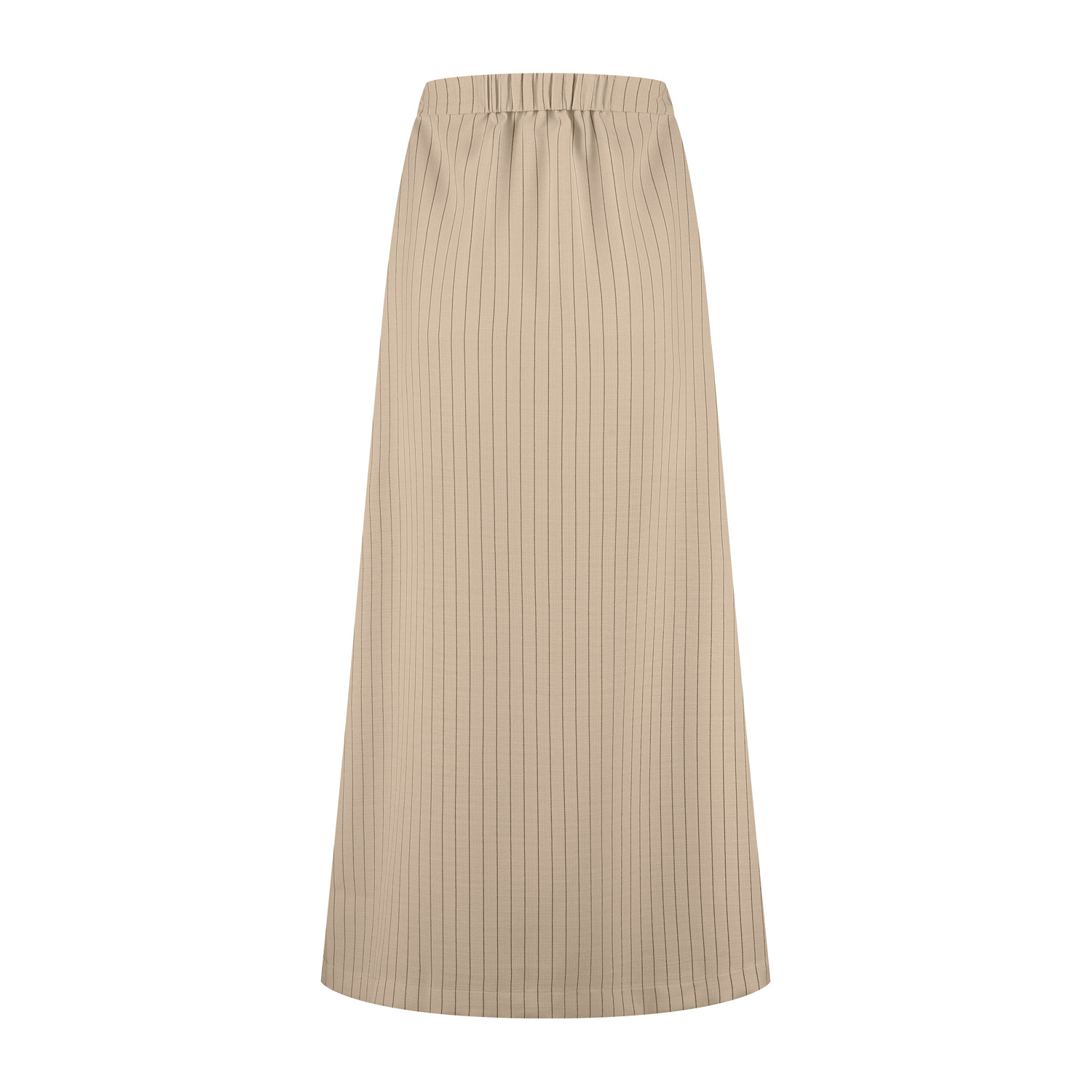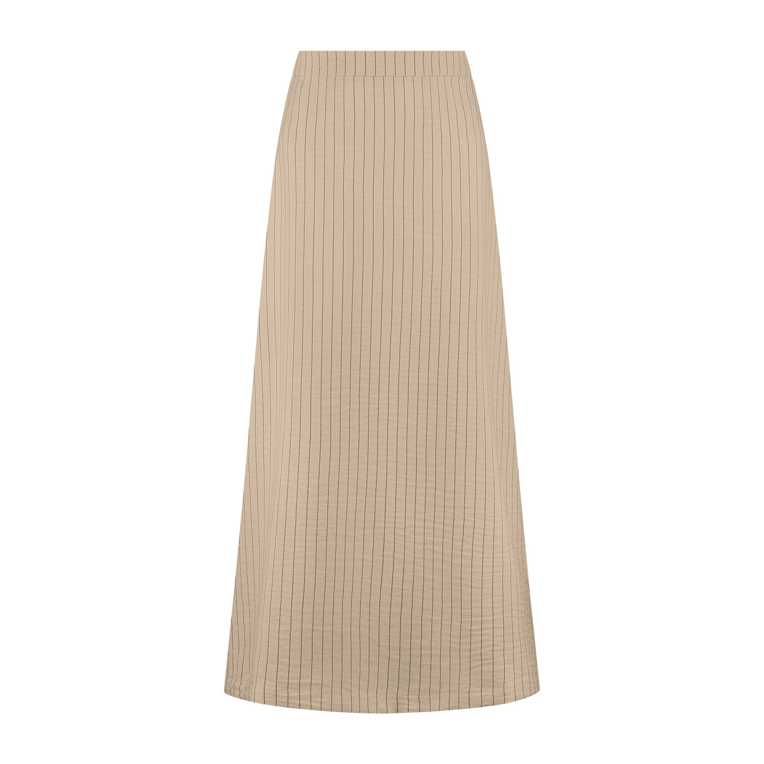 De rok Lena in donkerzand kleur met een zwart krijtstreepje is een échte toevoeging aan je garderobe, elegant in haar eenvoud. De lange, licht uitlopende pasvorm zorgt voor een vrouwelijk silhouet, t...