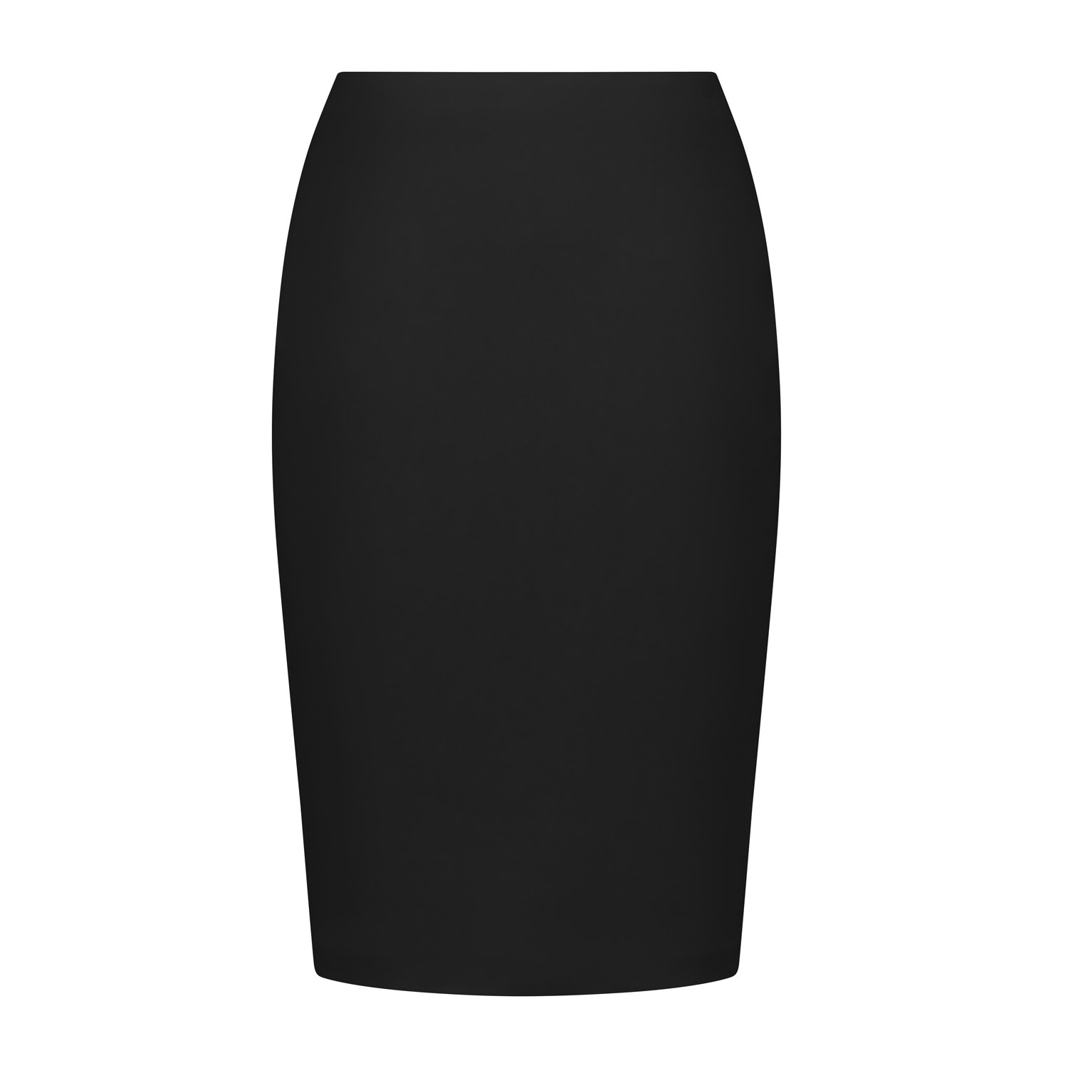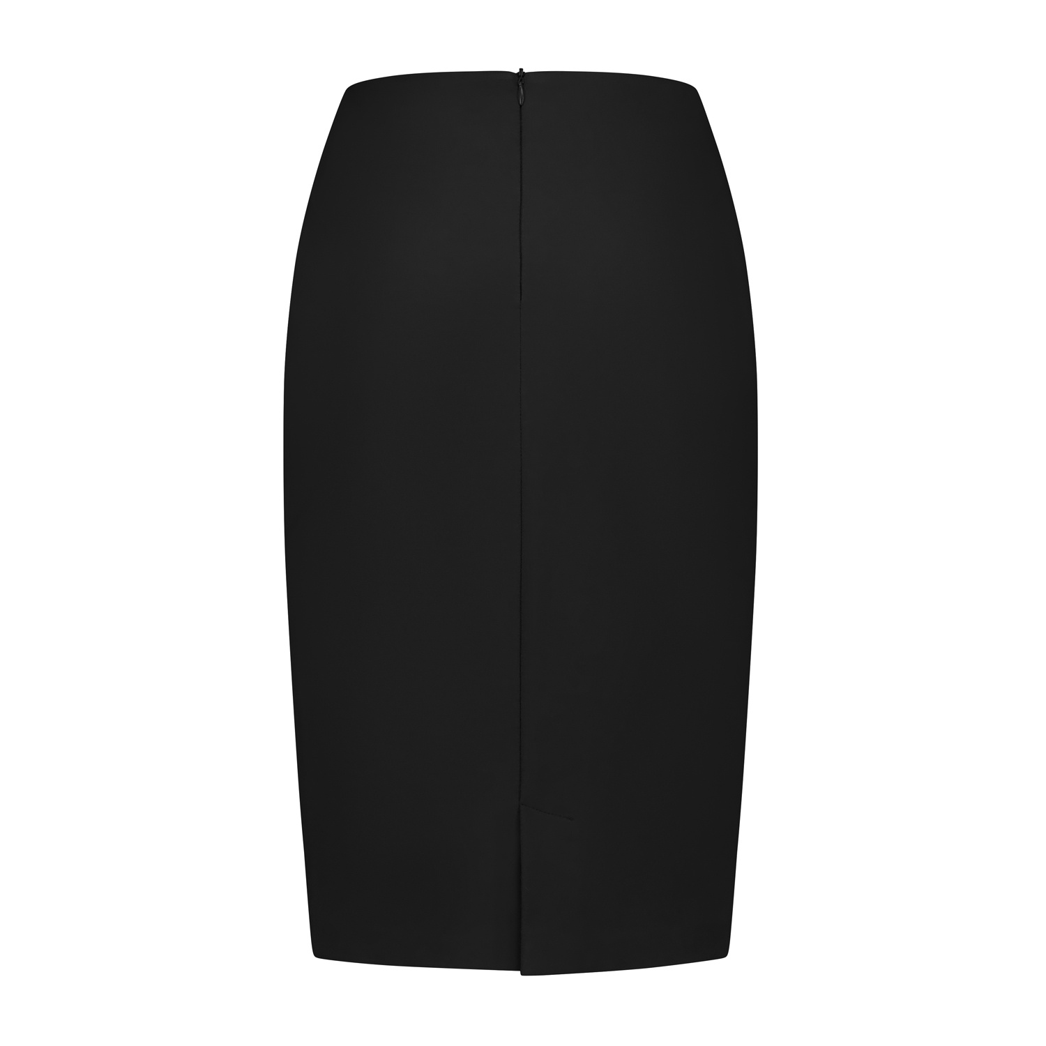 Deze zwart kleurige kokerrok geeft je outfit een verzorgde en tijdloze uitstraling. De rok is gemaakt in een comfortabele tricotpunto kwaliteitsstof die mooi aansluit. De rok is voorzien van een voeri...