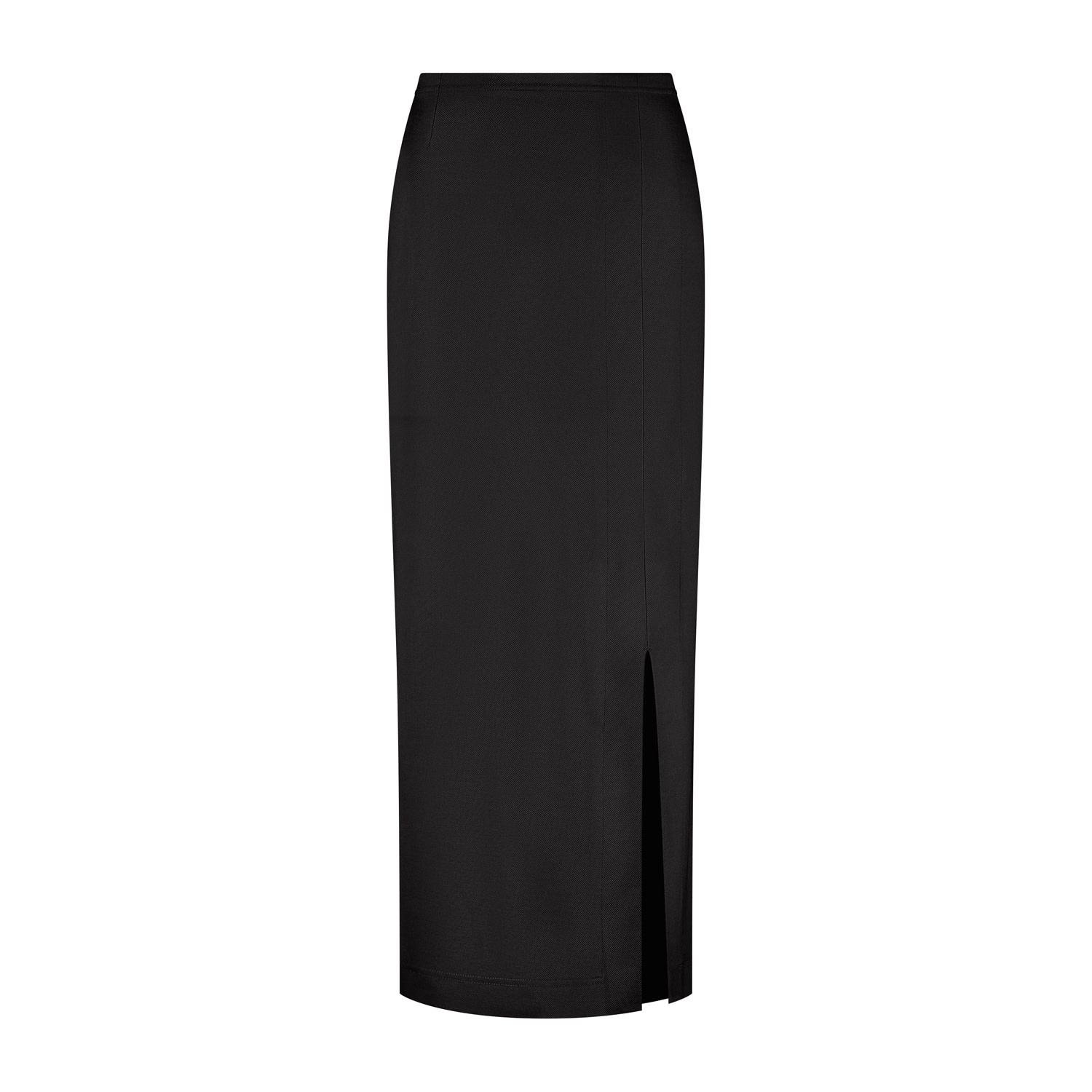 Ontdek onze elegantie met onze lange rok Sas in zwart. De rok is ontworpen met een smalle elastische tailleband voor een comfortabele pasvorm en een elegante lengte die zorgt voor een chique look. De verfijnde split aan de zij-voorzijde geeft bewegingsvrijheid én een stijlvol detail. Deze rok is perfect te combineren met wikkeltop Frosien maar ook met verschillende items uit de Port Lavande collectie. Deze lange rok is gemaakt in een stevige stretch kwaliteitsstof met een lichte ribstructuur.