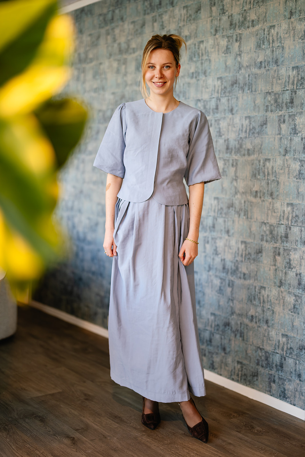 Ontdek de elegante eenvoud van de rok Sharon van Port Lavande. Deze lange rok combineert een gladde achterkant met speelse plooidetails aan de voorkant. De verschillende plooien geven de rok een chique uitstraling en de gladde tailleband zorgt voor een comfortabele pasvorm. Deze rok Sharon is gemaakt in een mooie stevige viscose kwaliteitsstof en is ongevoerd. Perfect te combineren met blouse/jasje Aniek en diverse andere items. Kortom: een moderne klassieker die je seizoen na seizoen blijft dragen.