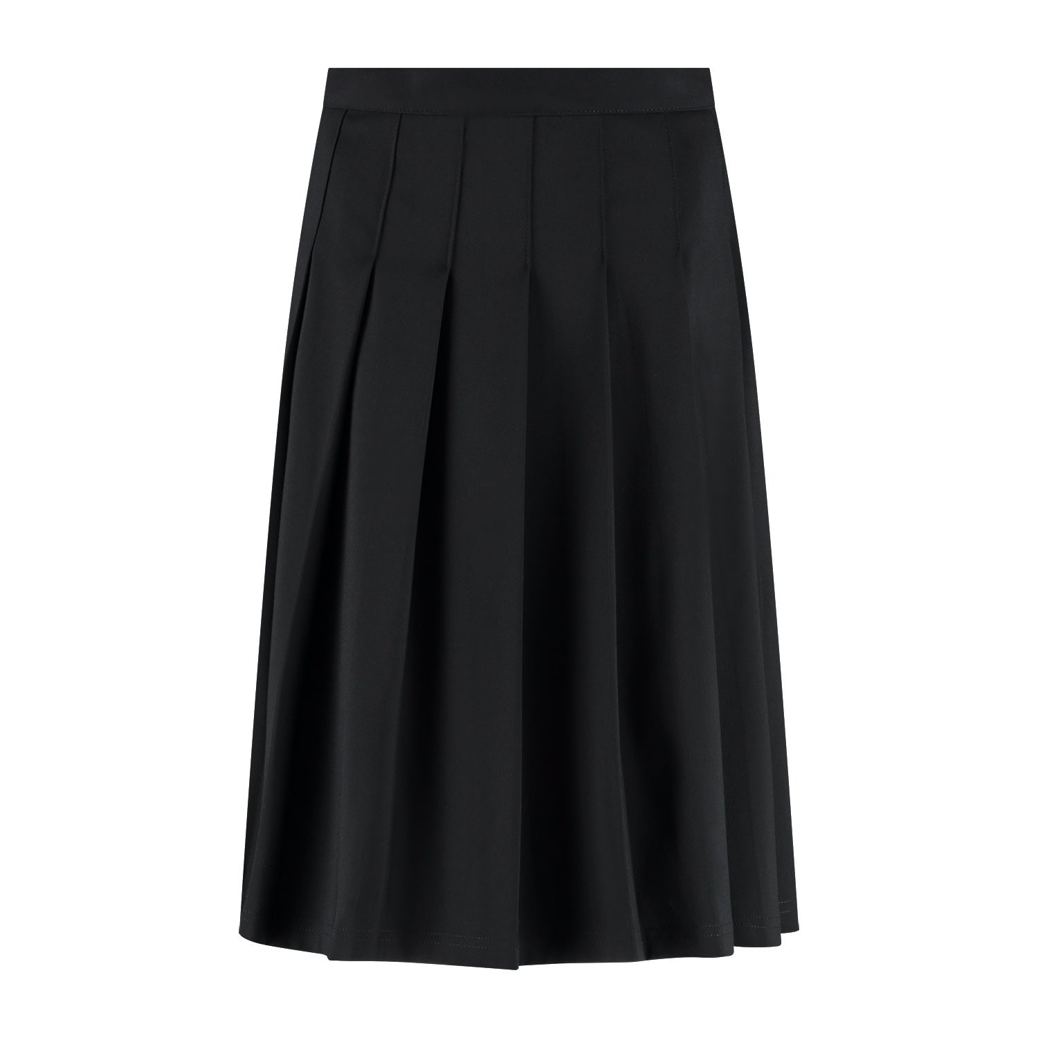 Voeg een vleugje tijdloze klasse toe aan uw garderobe met deze prachtige zwarte plooirok. De smalle tailleboord met in de zijkant een blinde rits en de verticale plooien zorgen voor een elegante uitst...