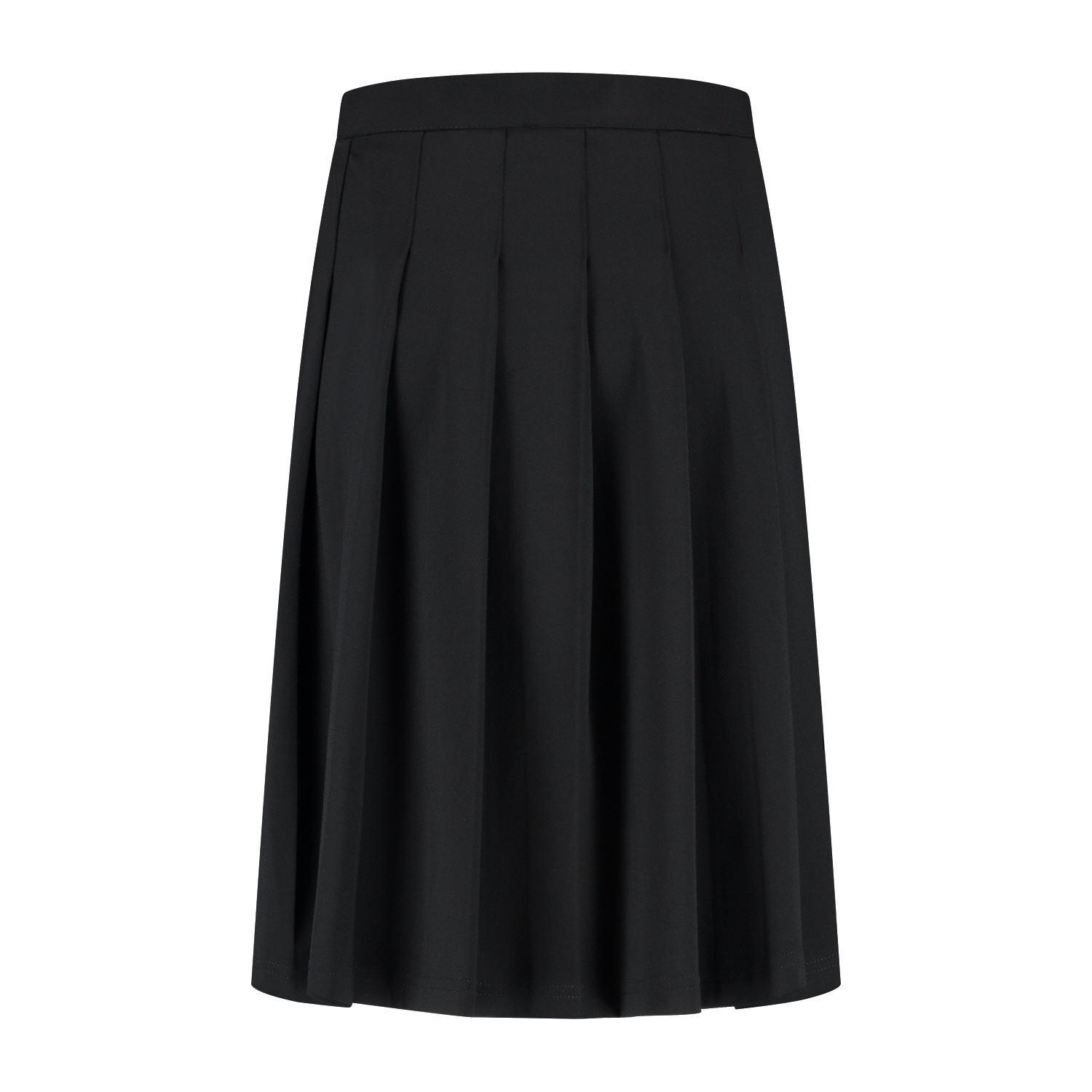 Voeg een vleugje tijdloze klasse toe aan uw garderobe met deze prachtige zwarte plooirok. De smalle tailleboord met in de zijkant een blinde rits en de verticale plooien zorgen voor een elegante uitstraling. Deze stijlvolle en veelzijdige rok is perfect te combineren met een blouse voor een formele look of een coltruitje, bontjasje of fluwelen jasje voor een casual-chique uitstraling en ook nog eens te dragen in elk seizoen van het jaar.