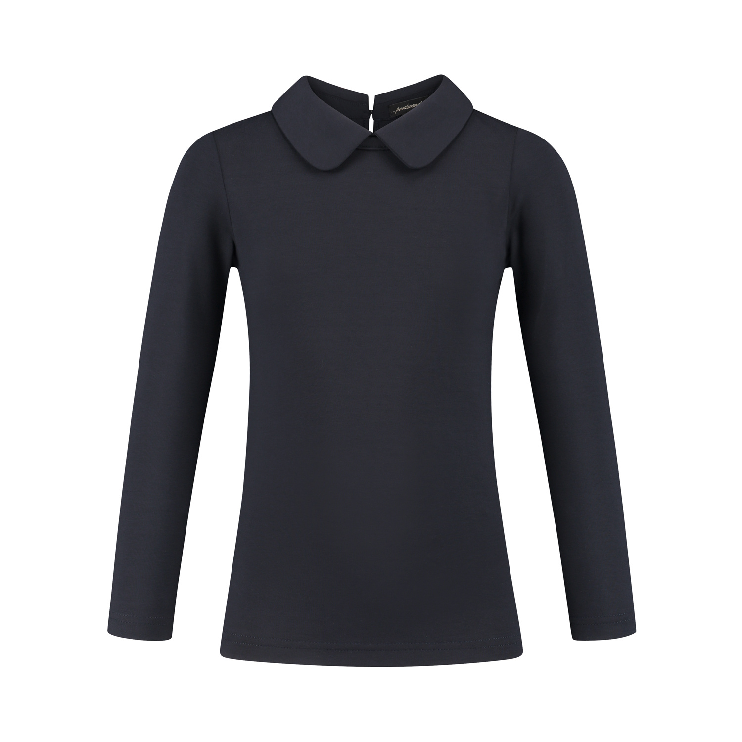 Tricot shirt met lange mouw en ronde kraag op staander. Middenachter sluit het shirt met een splitje met knoopje/lusje. Het shirt is gemaakt in een viscose tricot kwaliteitstof.