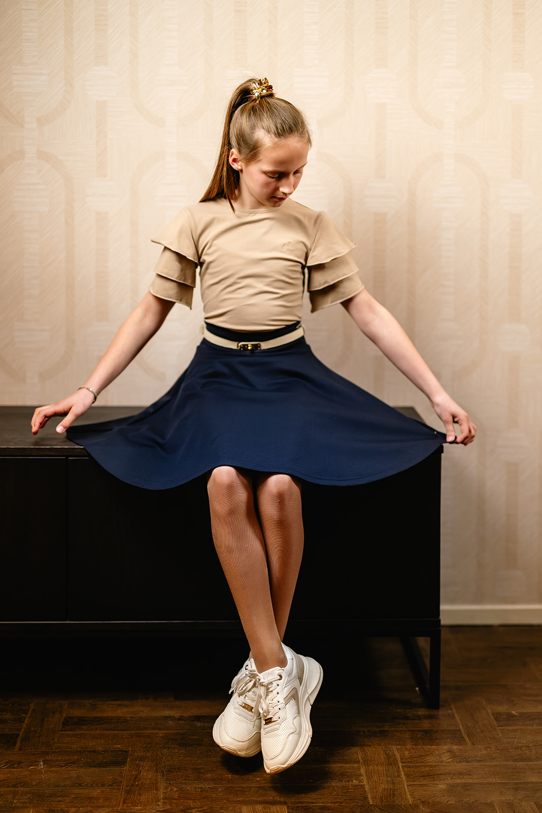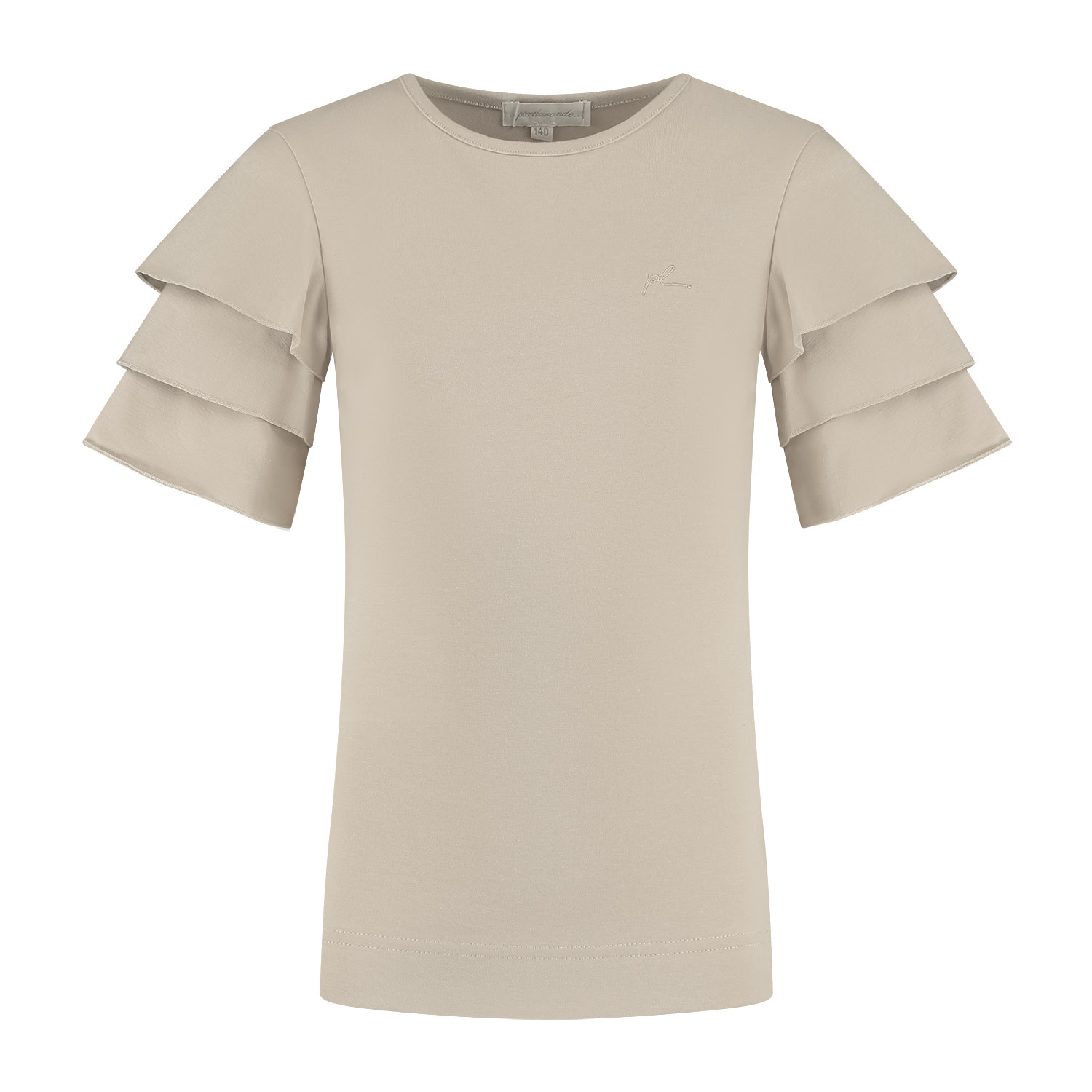 Shirt met ronde hals en laagjes voilant mouw. Het shirt heeft een klein ton sur ton PL borduurtje op de voorkant en is gemaakt in een tricot kwaliteitstof.