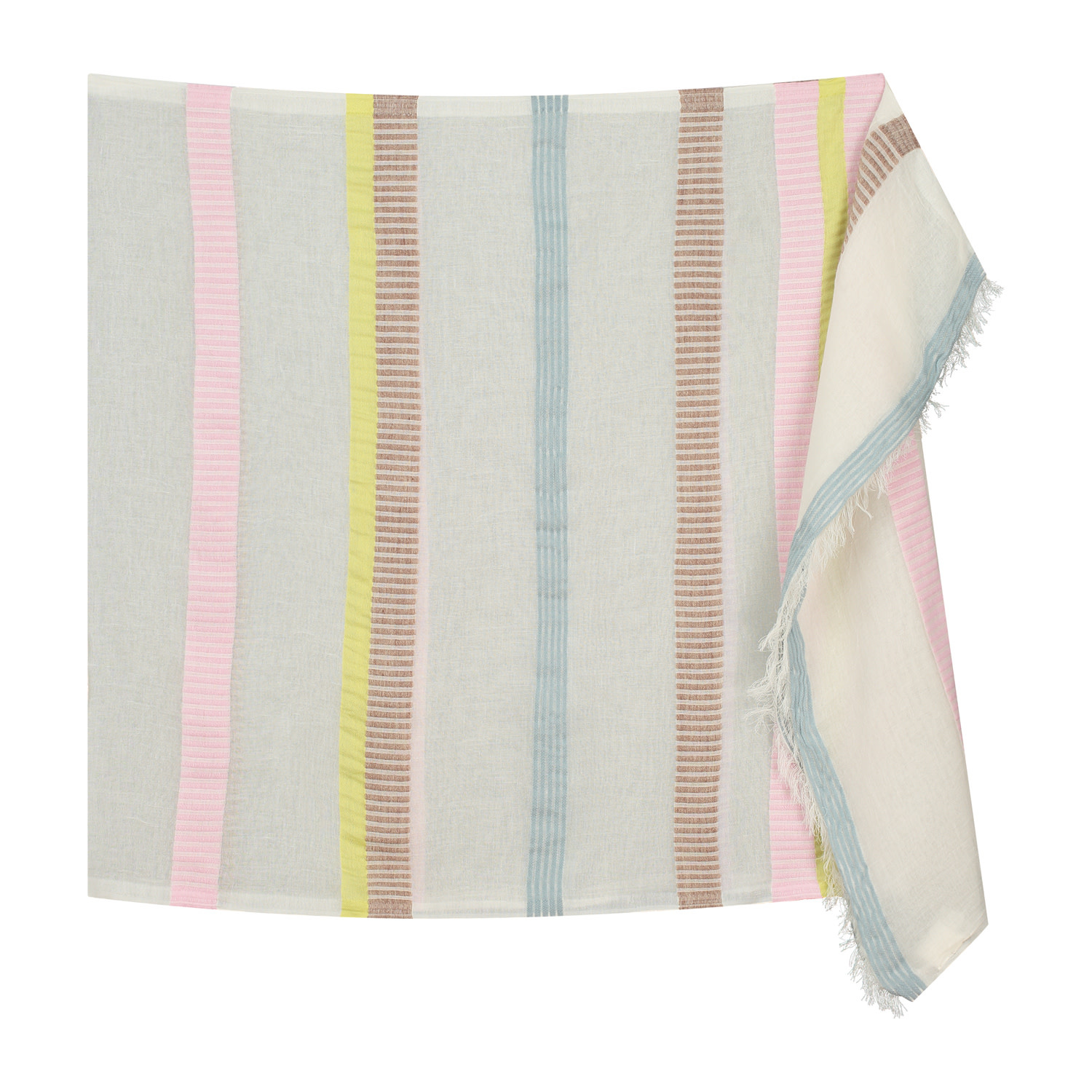 Chique dunne zomerse sjaal in zachte en frisse tinten. Kleur offwhite - divers Materiaal 98% katoen 2% lurex Afmeting (lxb) 70 x 180cm ...Chique dunne zomerse sjaal in zachte en frisse tinten.Kleuroffwhite - diversMateriaal98% katoen 2% lurexAfmeting (lxb)70 x 180cmToon meerToon minder