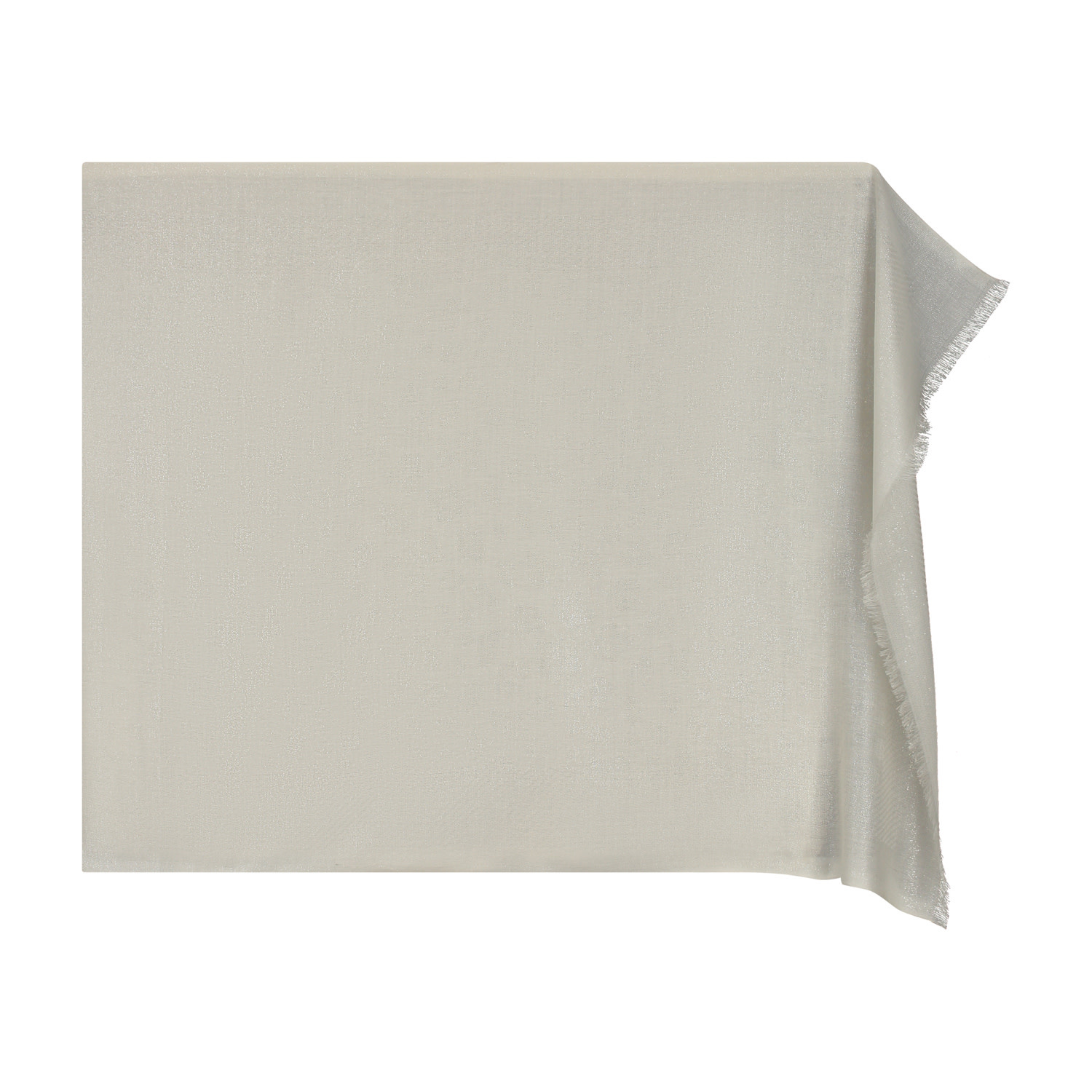 Sjaal met subtiele zilverkleurige print en smalle franje langs de uiteinden. Kleur lichtzand- zilverkleur Materiaal 58% katoen 32% wol 10% lurex Afmeting (bxdxh) 70cm x 180cm ...Sjaal met subtiele zilverkleurige print en smalle franje langs de uiteinden. Kleurlichtzand- zilverkleurMateriaal58% katoen 32% wol 10% lurexAfmeting (bxdxh)70cm x 180cmToon meerToon minder
