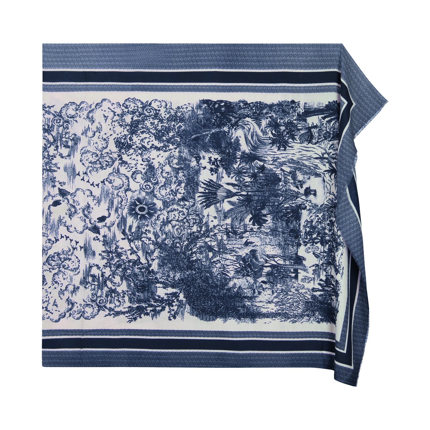 Deze fijne damessjaal is een heerlijke zachte sjaal. De unieke print in donkerblauw en offwhite tint geeft de sjaal een speelse en klassieke look aan je outfit. De sjaal bevat een klassieke rand. Ontdek de vele mogelijkheden van deze veelzijdige sjaal.