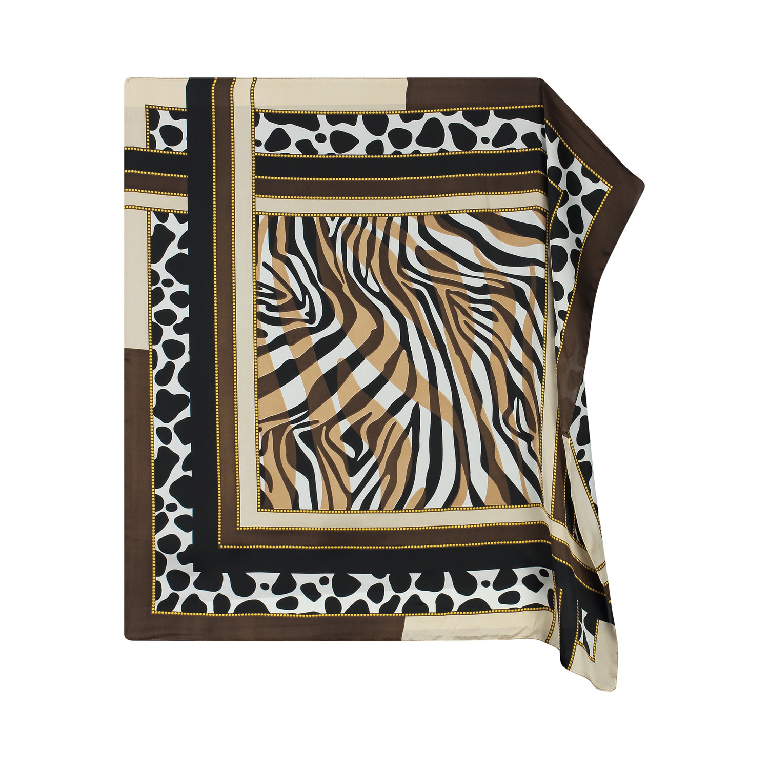 Voeg een vleugje luxe toe aan je look met deze stijlvolle sjaal. Het mooie motief in camel-zwart-bruin tinten geeft elke outfit een elegante, moderne uitstraling. Gemaakt van zacht, soepele stof dat heerlijk aanvoelt op de huid en mooi valt, perfect om te dragen rond je hals, in je haar of aan je tas.