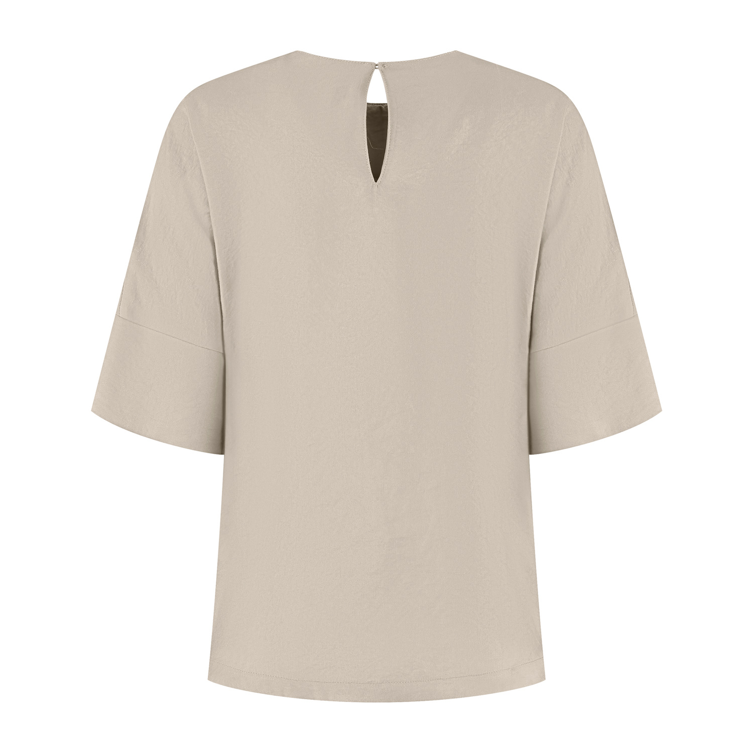 Deze top van Port Lavande heeft een chique uitstraling en qua zandkleurige tint makkelijk te combineren bij zowel een chique als casual outfit. Deze top heeft een ronde halslijn met plooien waardoor h...