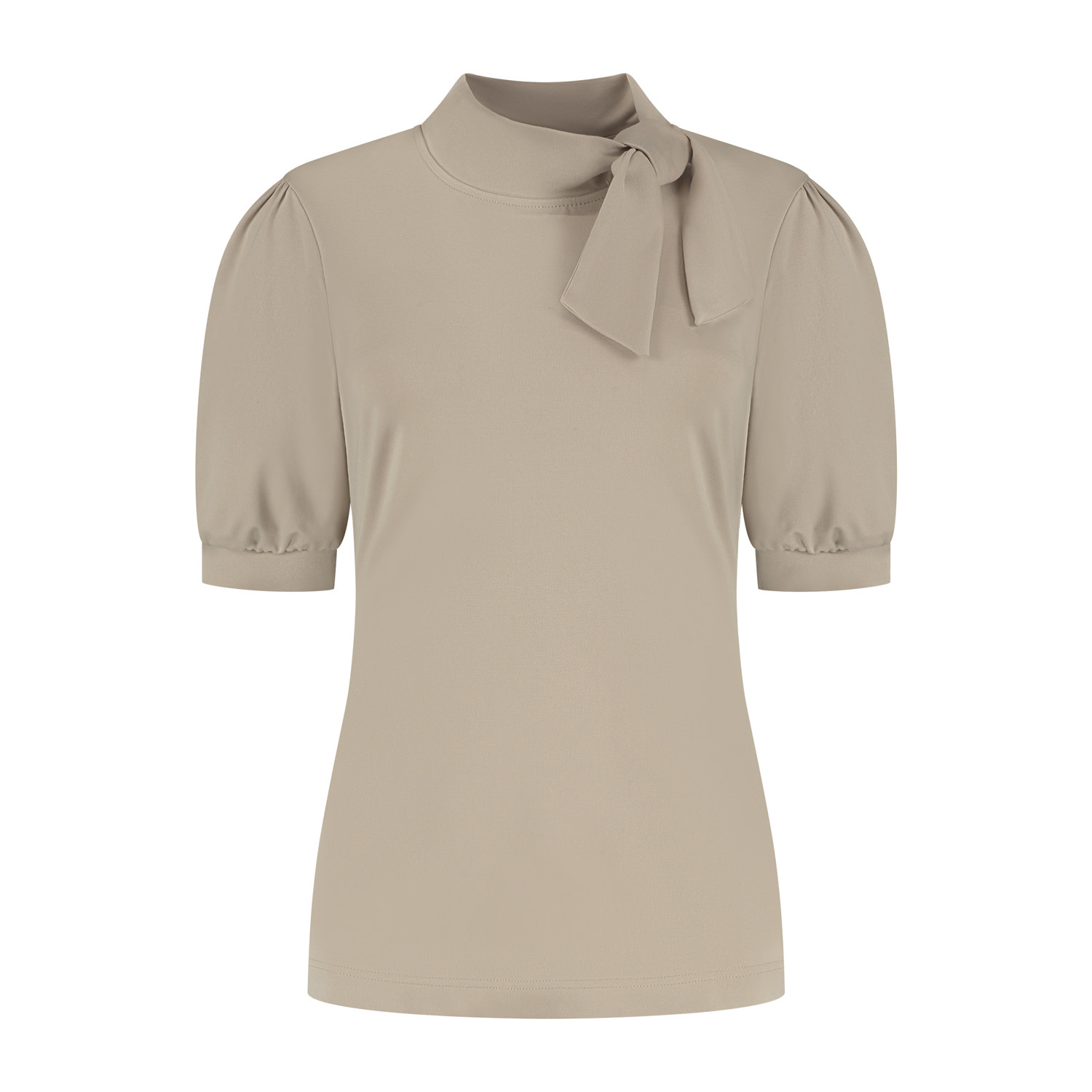 De top Elna in de zandkleur is een prachtig item die moeiteloos stijl en comfort combineert. De top heeft lichte pofmouwen met een smalboordje en een kraagje met strik/knoop detail bij de hals. Deze top is gemaakt in een zachte duurzame bambo-tricotkwaliteitststof. Een veelzijdige top die je garderobe direct naar een hoger niveau tilt, stijlvol en vrouwelijk.