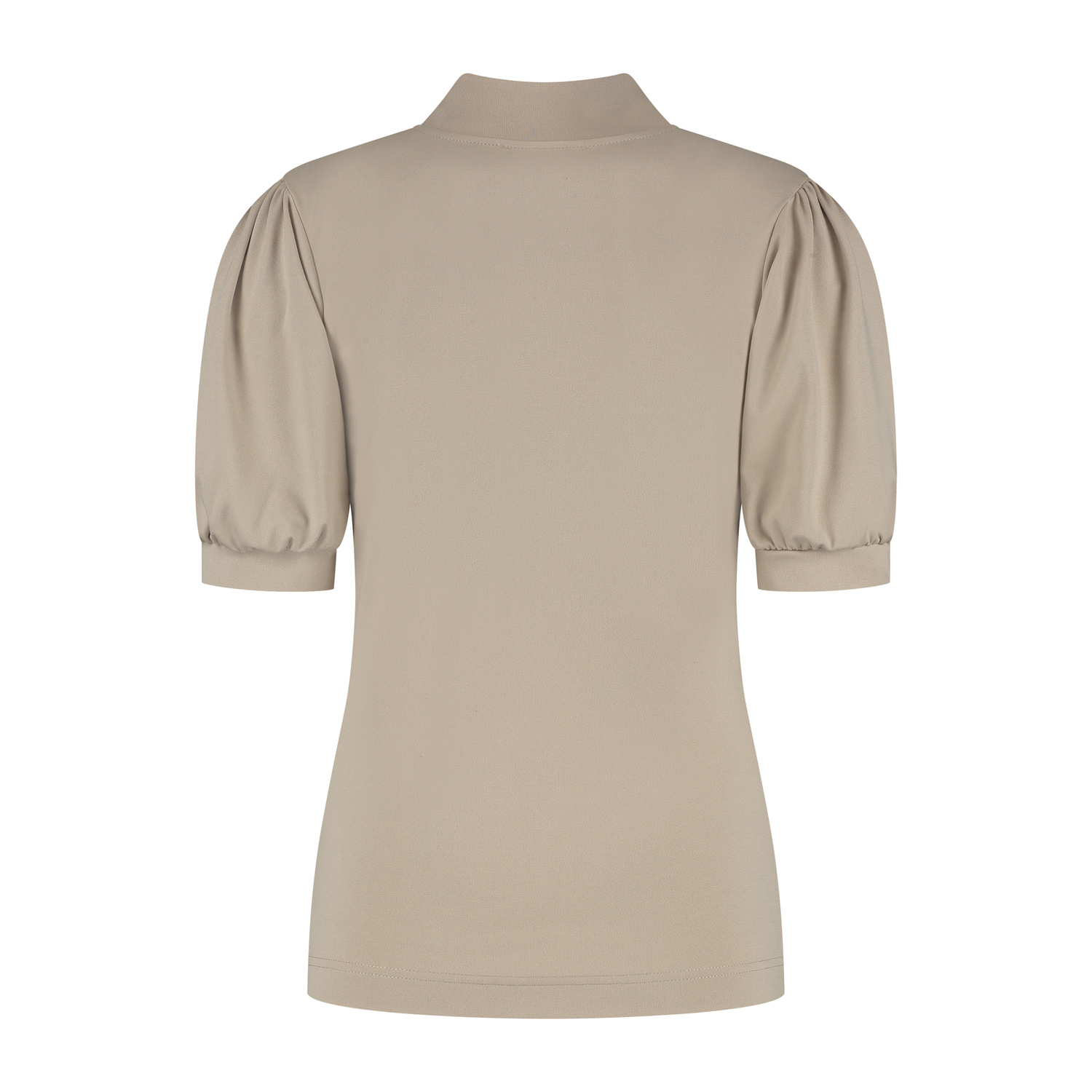De top Elna in de zandkleur is een prachtig item die moeiteloos stijl en comfort combineert. De top heeft lichte pofmouwen met een smalboordje en een kraagje met strik/knoop detail bij de hals. Deze t...