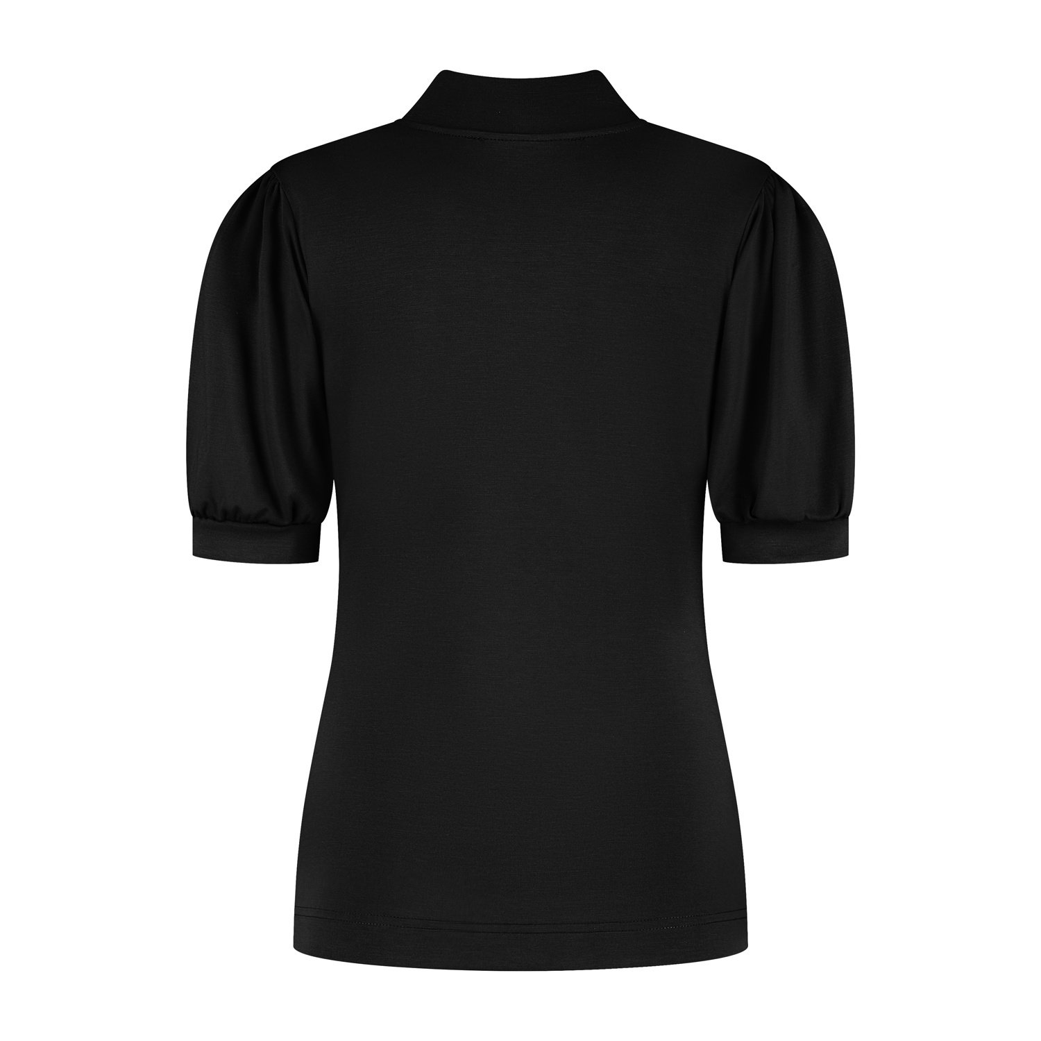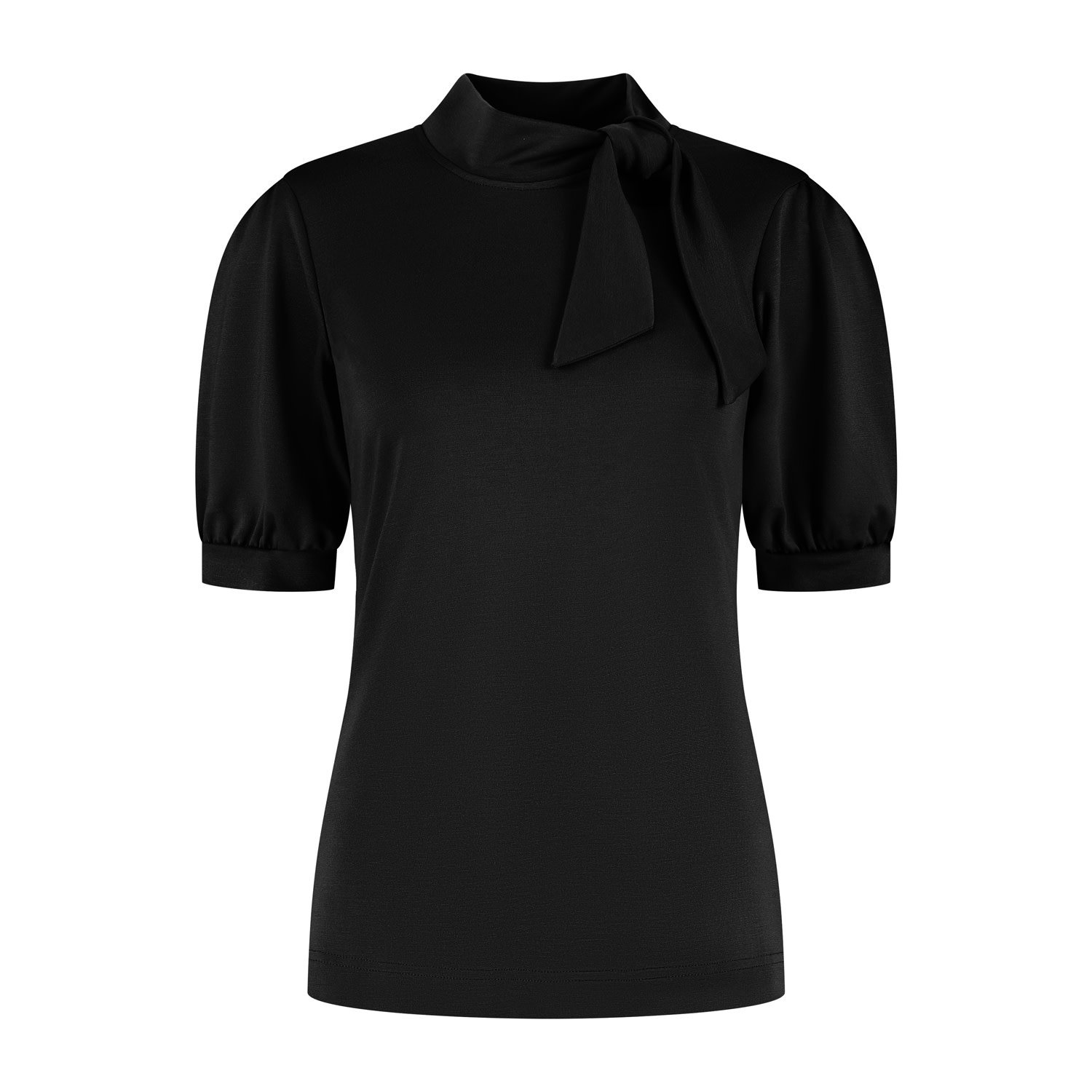 De top Elna in de kleur zwart is een prachtig item die moeiteloos stijl en comfort combineert. De top heeft lichte pofmouwen met een smalboordje en een kraagje met strik/knoop detail bij de hals. Deze top is gemaakt in een zachte duurzame bambo-tricotkwaliteitststof. Een veelzijdige top die je garderobe direct naar een hoger niveau tilt, stijlvol en vrouwelijk.